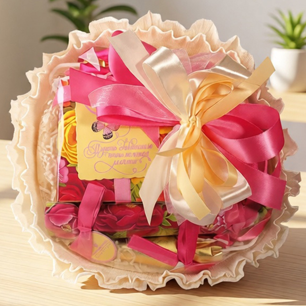 Самые искренние поздравления и пожелания зачастую преподносятся вместе с букетом. Цветы - классическое решение. Но что если заменить несъедобные цветы на съедобные сладости? Получится подарочный набор, наполненный драже, цукатами в шоколаде и вкуснейшими конфетами.