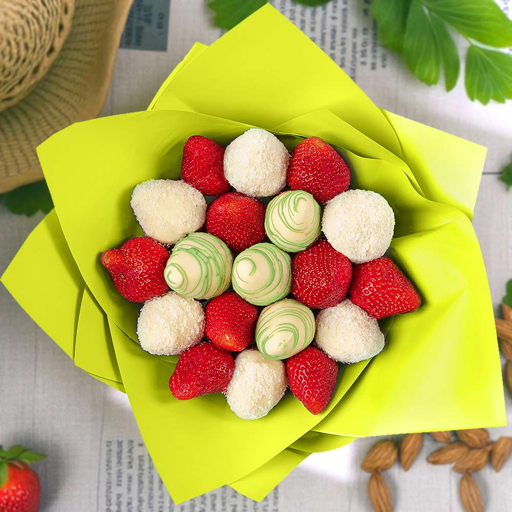 Все букеты со свежими ягодами изготавливаются непосредственно перед доставкой.