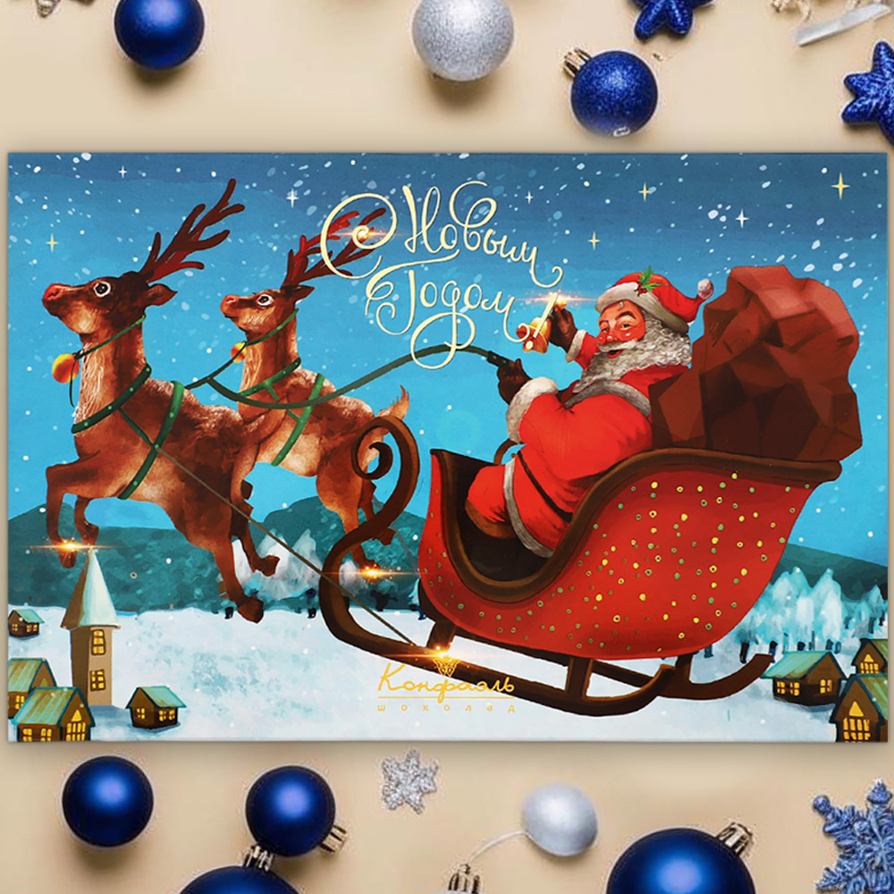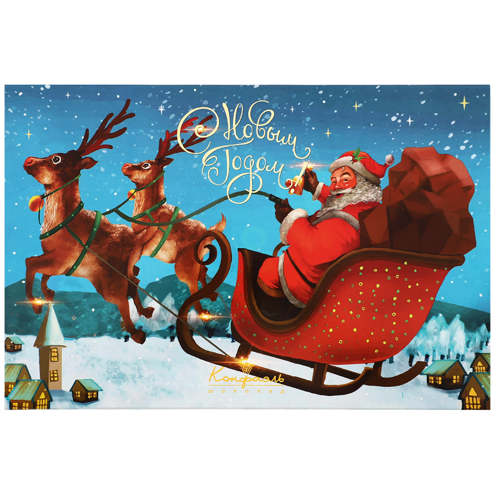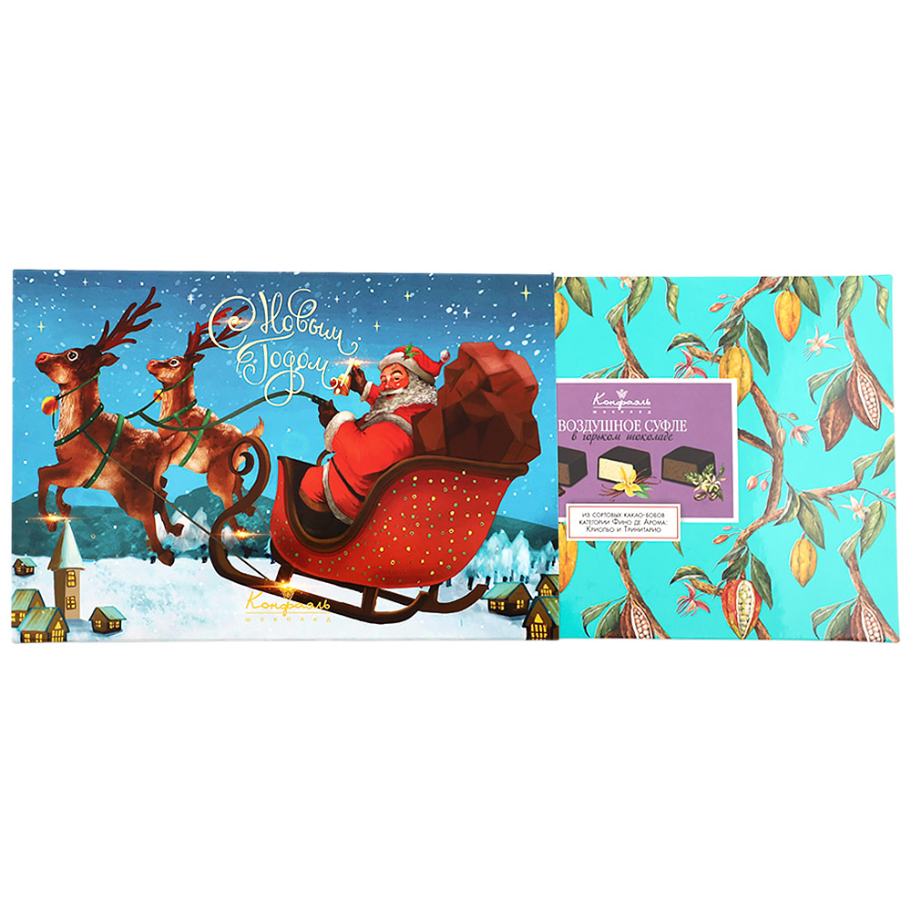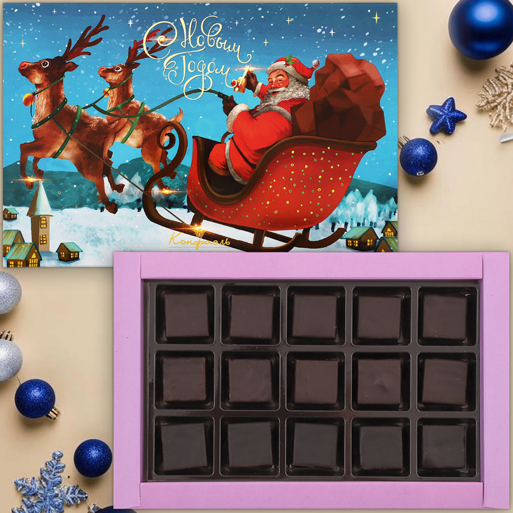«Дед Мороз на санях» набор конфет суфле в горьком шоколаде 90г