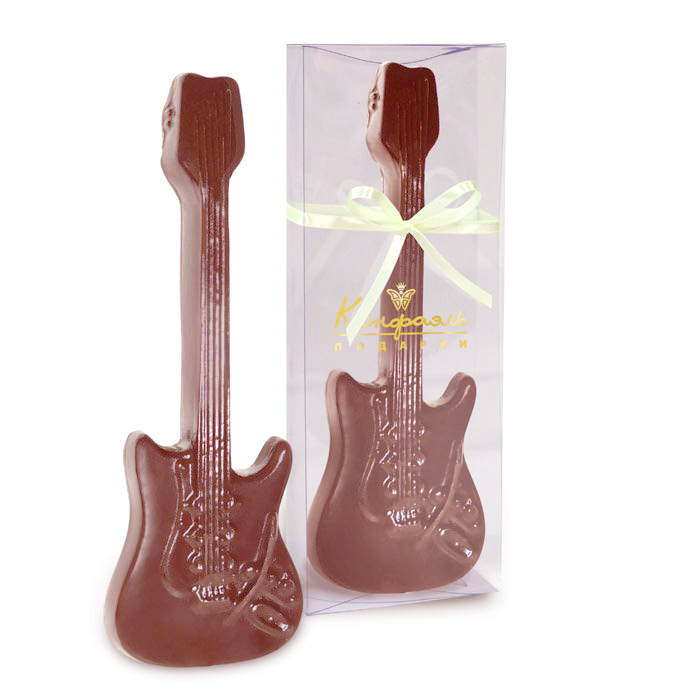 Шоколадная скульптура «Гитара» в прозрачной упаковке - эффектный вариант подарка к любому празднику.