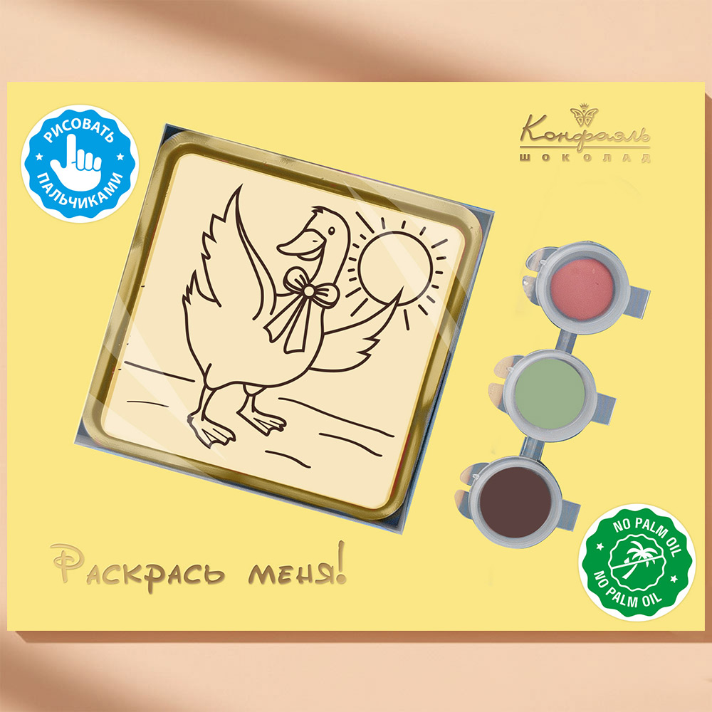 Набор шоколада: декорированное полотно из белого шоколада, цветная глазурь.