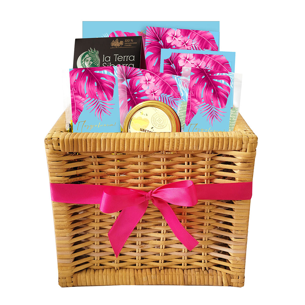 Подарочная корзина: шоколад, мармелад, конфеты ассорти, мед, чайный напиток