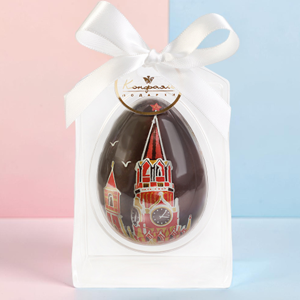 Десертное яйцо из молочного шоколада, украшенное изображением Кремлёвских башен.