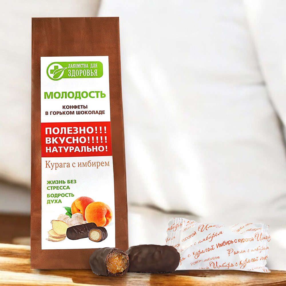Конфеты глазированные "Курага с имбирем" с горьким шоколадом