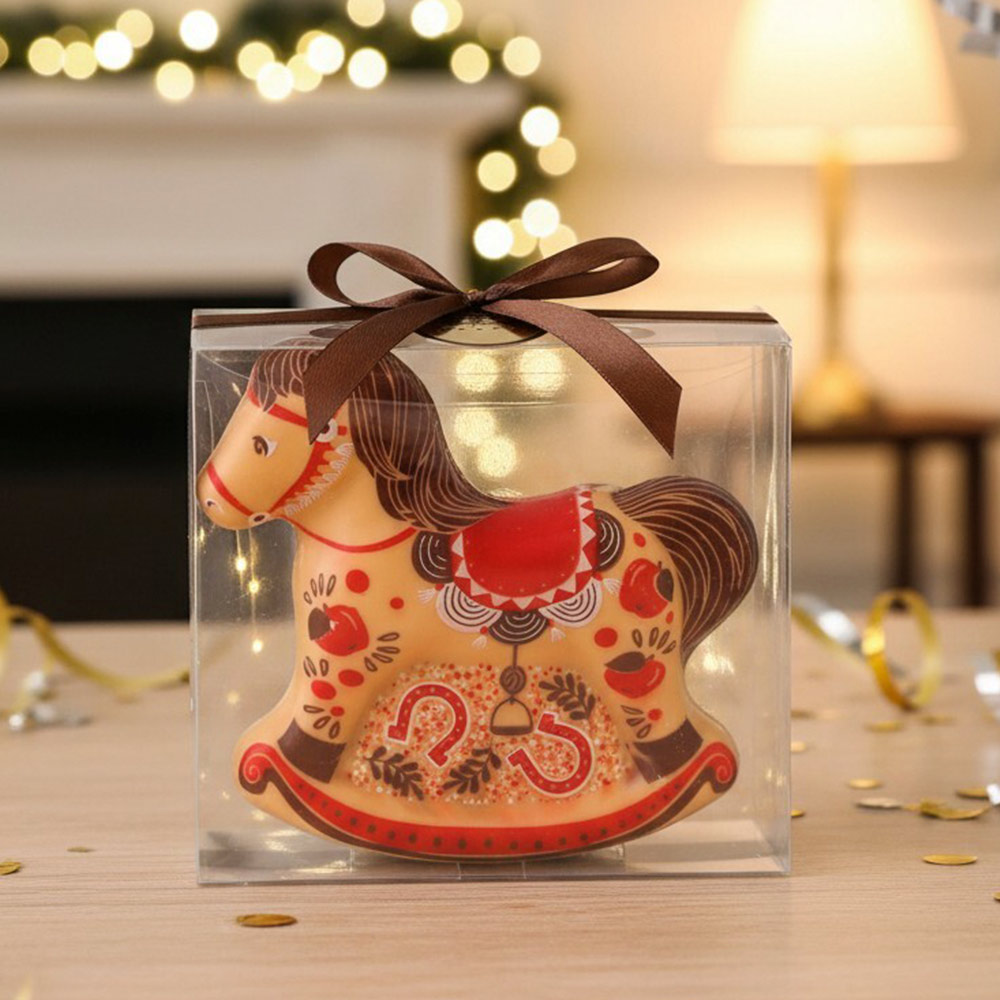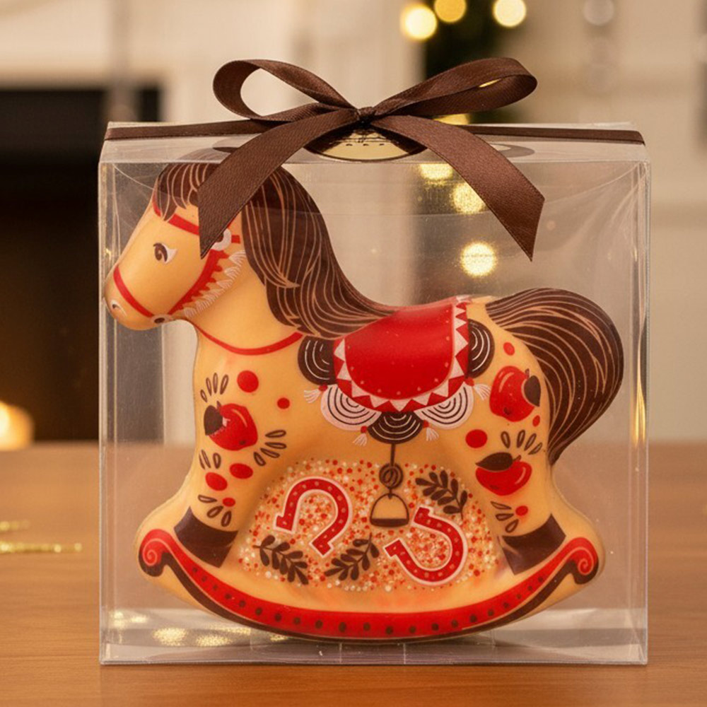 Представьте себе сияющую улыбку Ваших близких, когда они откроют Ваш новогодний подарок… И эта улыбка станет ещё шире благодаря нашему особенному десерту-сюрпризу – Шоколадной лошадки со вкусом апельсина. Ведь Новый Год 2026 проходит под знаком Лошади, и лучшего способа пожелать родным и близким здоровья, успеха и радости сложно придумать!