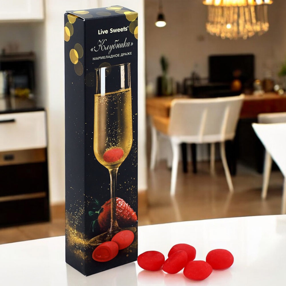 Добавьте драже со вкусом клубники в бокал с шампанским, загадайте желание и насладитесь вкусом.