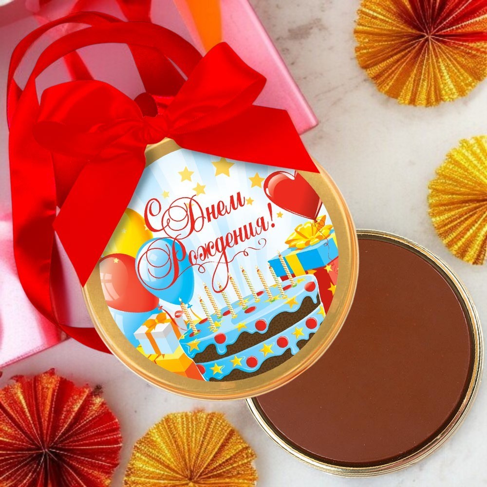 Порадуйте именинника сладким мини-шедевром – изысканной медалью из премиального молочного шоколада! Это не просто десерт, а трогательный знак внимания, который превратит обычное поздравление в маленький праздник.