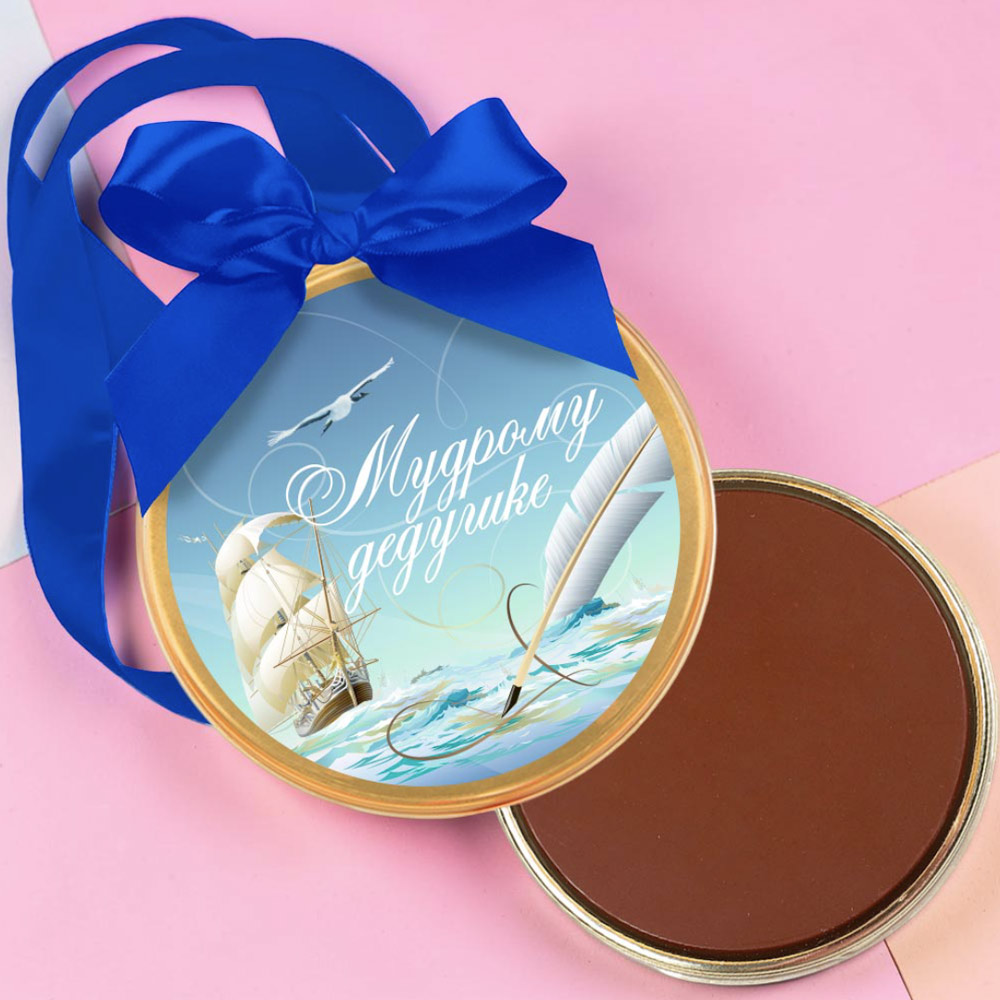 Яркая шоколадная медаль от «Конфаэль» с красивым морским пейзажем станет не просто лучшей наградой для него за любовь и ласку, которую он сможет носить на шее, но и сладким лакомством из нежнейшего молочного шоколада.