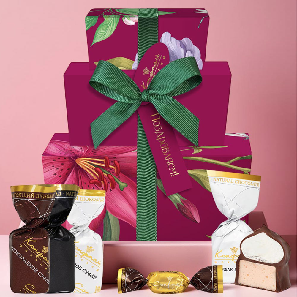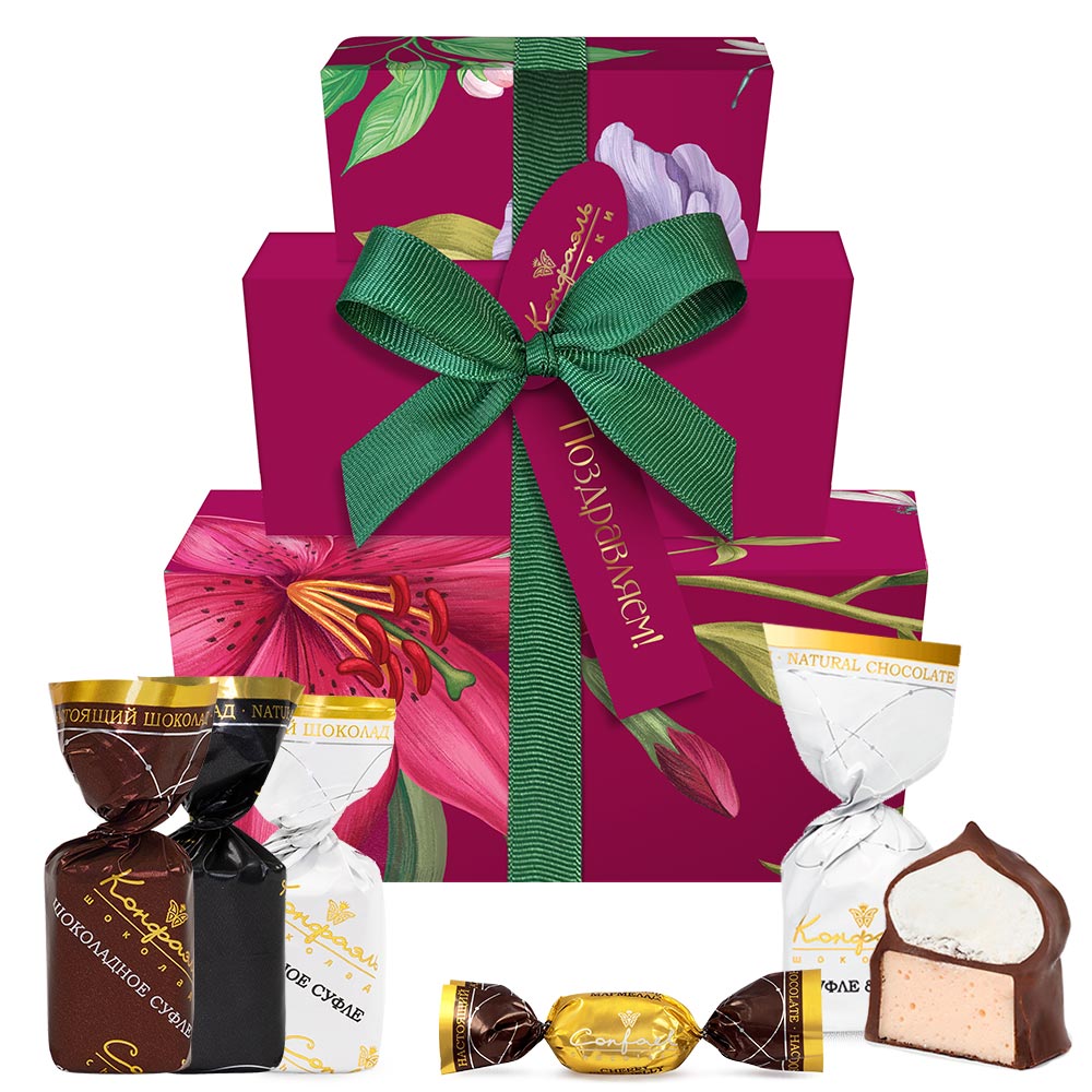 Подарок 014/ Конфеты «Суфле» в горьком шоколаде (ванильное, шоколадное, кофейное)/ 80 г