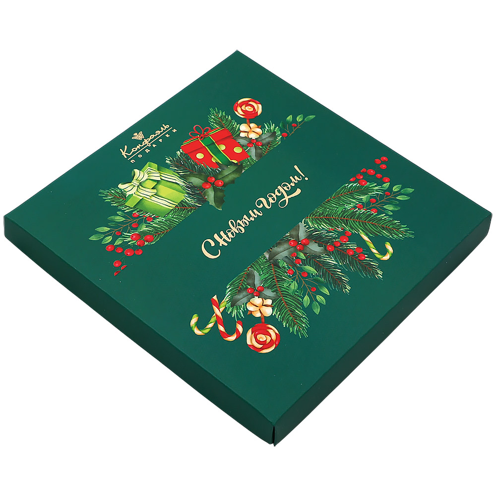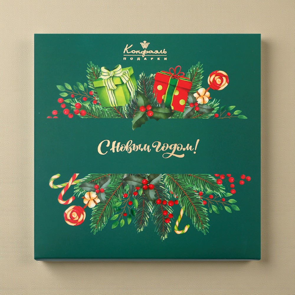 Праздничный дизайн. Конфетные наборы оформлены в новогодней стилистике.