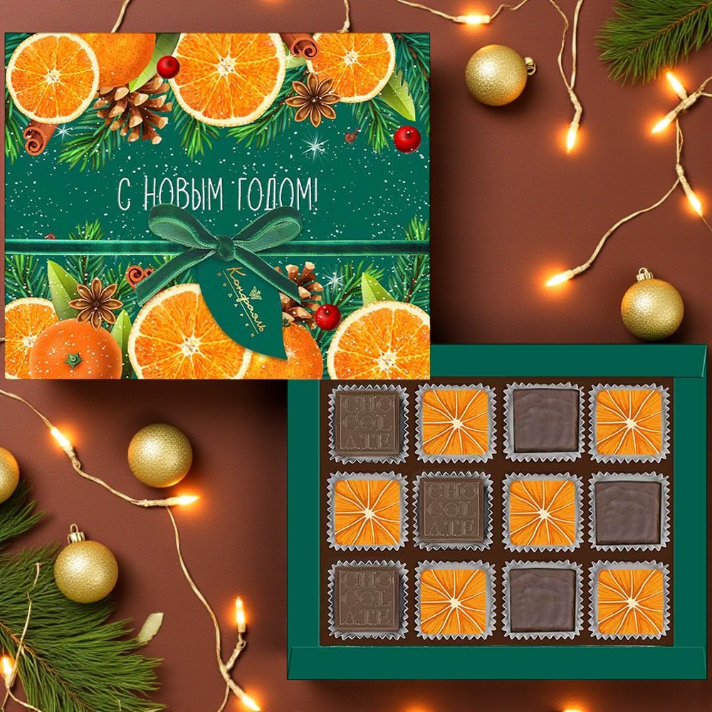 Новогодний набор апельсинового суфле и шоколадных конфет 95г