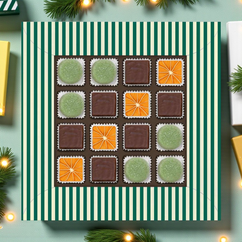 Мармелад желейный со вкусом «Зеленая дыня», конфеты «Суфле» в горьком шоколаде (апельсиновое), шоколадные конфеты «Ассорти» с кремовой начинкой и декором