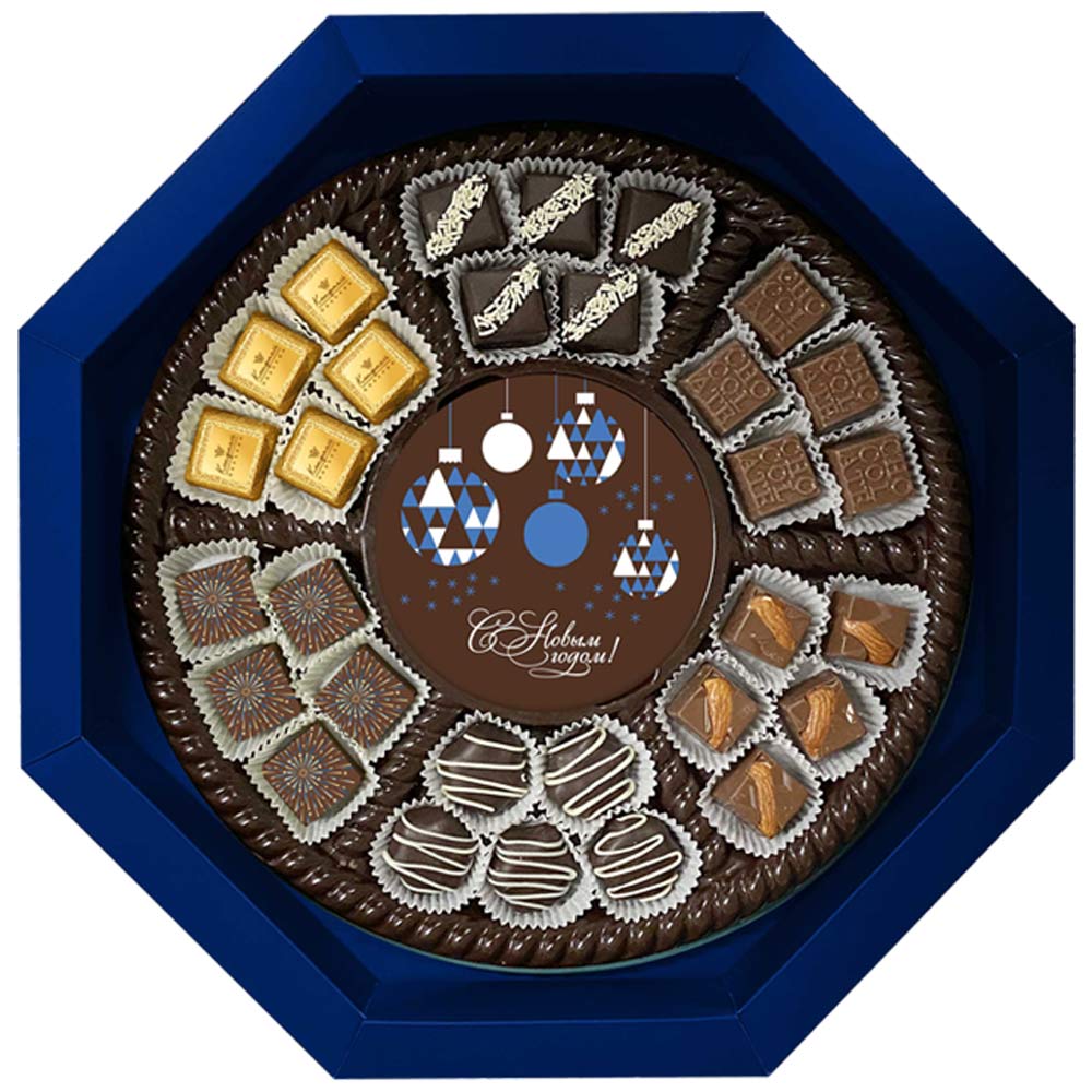Шоколад молочный с декором, шоколад молочный с миндалем, шоколадные конфеты «Ассорти» с кремовой и сливочной начинками, с кремовой начинкой и декором, конфеты «Мягкий грильяж» в горьком шоколаде, конфеты «Желейные» в горьком шоколаде (апельсиновые)