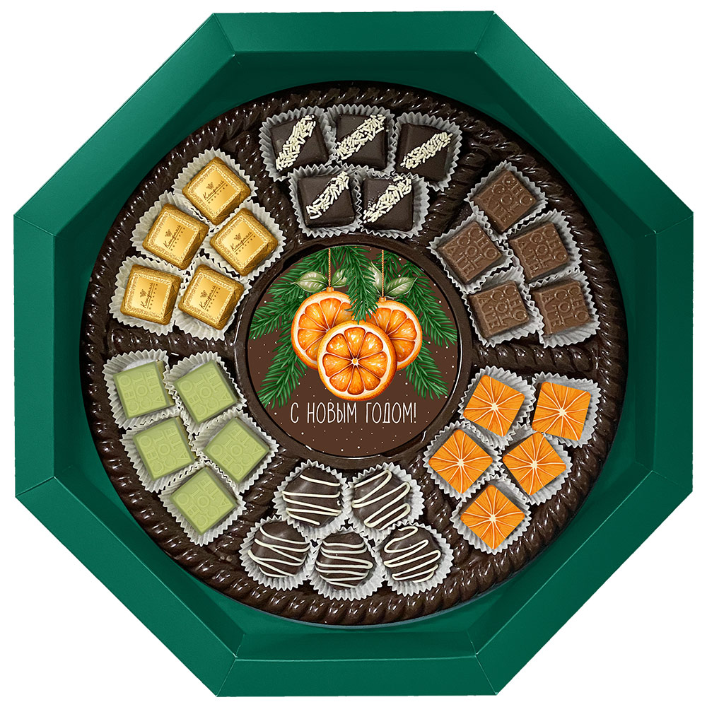 Шоколад молочный с декором, шоколадные конфеты «Ассорти» с кремовыми и сливочными начинками, с кремовой начинкой и декором, конфеты «Мягкий грильяж» в горьком шоколаде, конфеты «Желейные» в горьком шоколаде (апельсиновые)