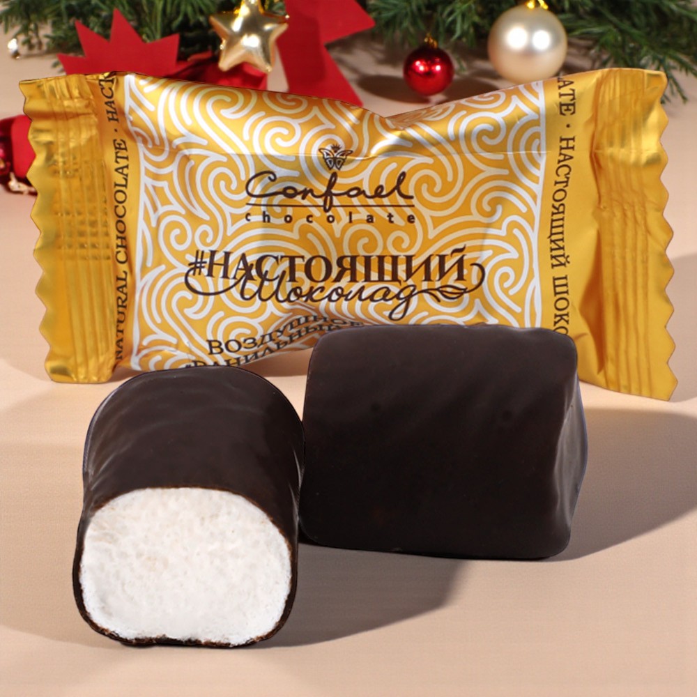 Конфеты глазированные в горьком шоколаде маршмеллоу ( ваниль)