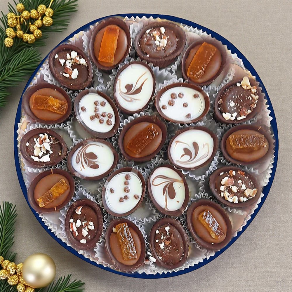 Состав: шоколадные массы – сахар, масло какао, молоко цельное сухое, какао тертое, какао-порошок, сыворотка молочная сухая, молочный жир, паста ореховая из ядер фундука, эмульгаторы (соевый лецитин, Е476), соль, ароматизаторы; начинки – жир специального назначения (масло ши, рапсовое масло, соевое масло, антиокислитель( лимонная кислота)), молоко сухое цельное, молоко сухое обезжиренное, белый шоколад (сахар, масло какао, сухое обезжиренное молоко, сухое цельное молоко, эмульгатор (лецитин соевый), экстракт ванили), паста из кофе (кофе, растительный жир), рис воздушный с какао (крупа рисовая, сахар, какао, соль), цукаты апельсиновых корочек, фундук жареный тертый, марципановая масса, ароматизаторы.