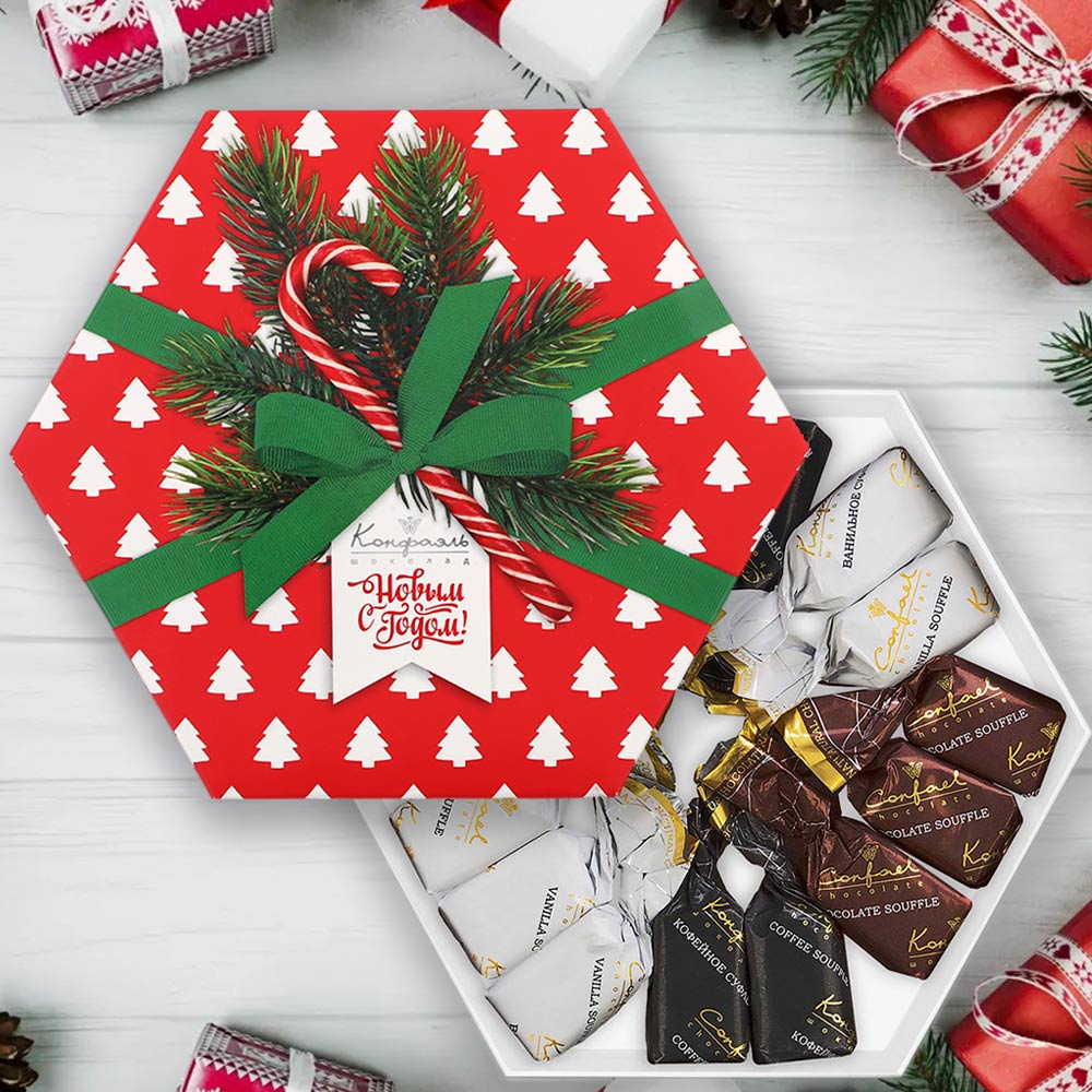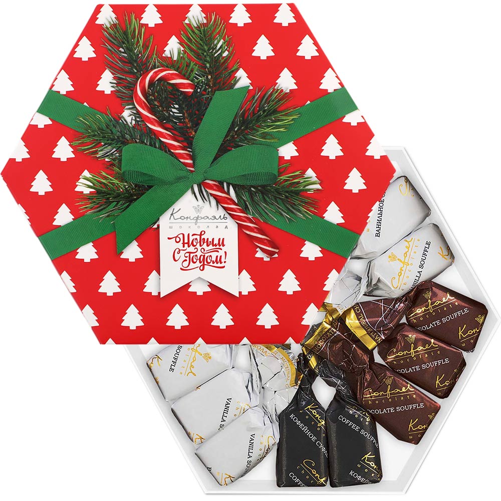 Состав: шоколадная масса -сахар, какао тертое, масло какао, какао-порошок, эмульгаторы (соевый лецитин, Е476); начинки - сахар, патока, молоко сгущенное (молоко цельное, сахар (сахароза, лактоза)), масло сладко-сливочное, белок яичный, желирующий агент (агар), регулятор кислотности (кислота лимонная), консервант (сорбиновая кислота), эмульгатор (Е471), какао-порошок, кофе натуральный молотый, экстракт ванили, ароматизаторы, пищевой краситель (сахарный колер).