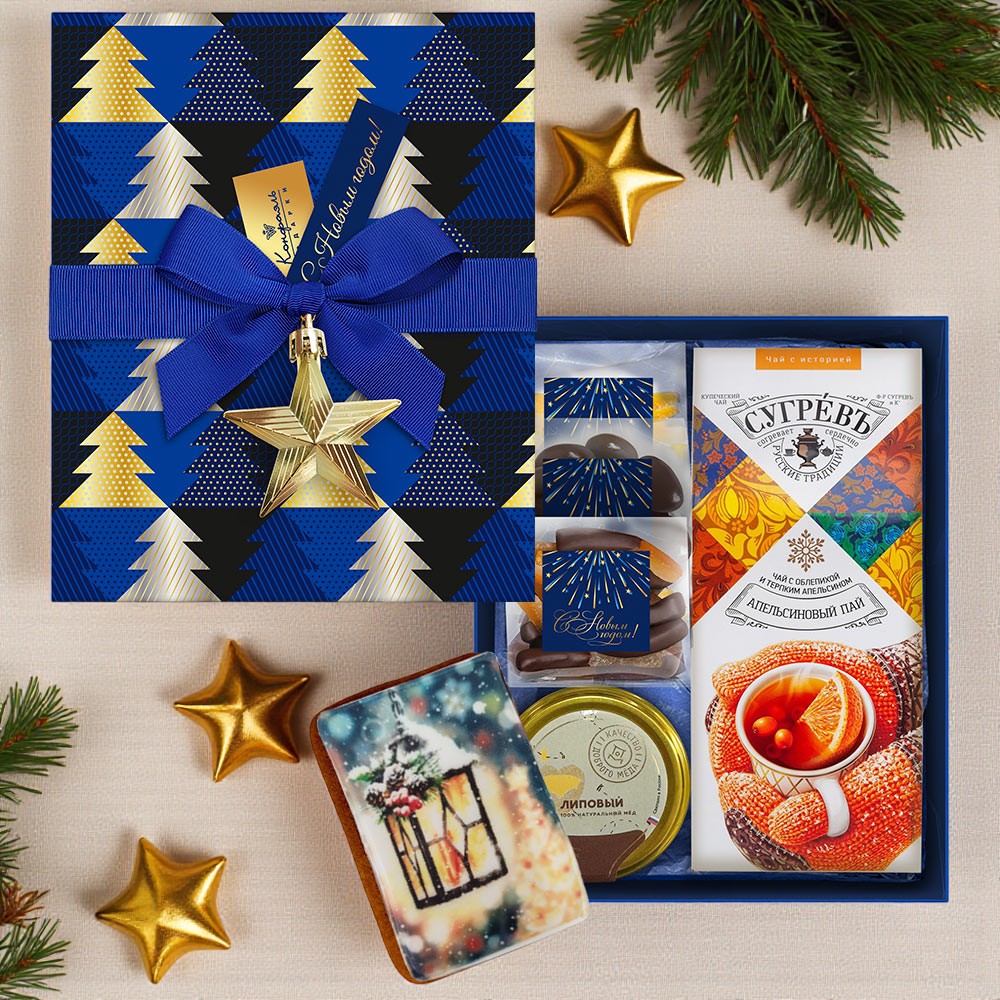 Новогодний набор: конфеты, цукаты, драже, пряник, мед, чай 435г