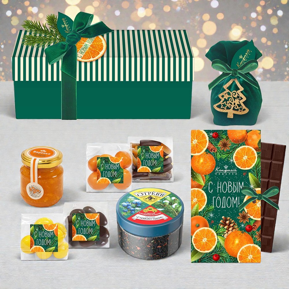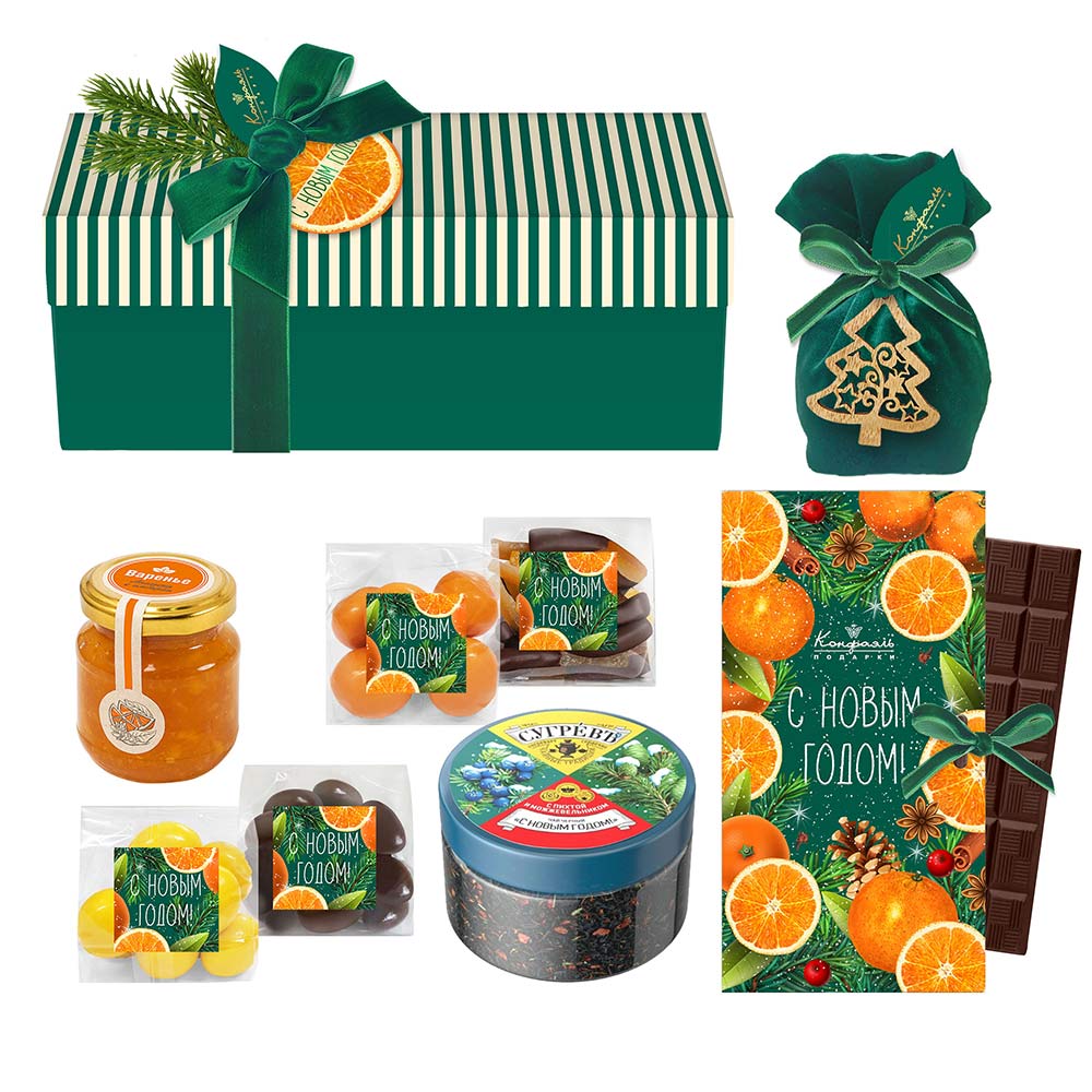 Новогодний набор шоколада и конфет: драже, ассорти, цукаты, варенье, чай 720г