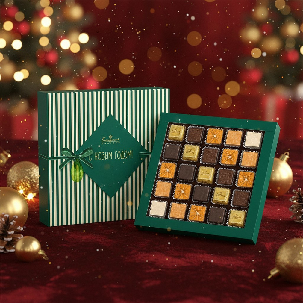 "Ассорти" молочный шоколад с кремовой начинкой со вкусом фисташки с вафельной крошкой, "Ассорти" оранжевый шоколад- сливочная начинка Манго-Маракуйя, "Ассорти" белая- кремовая начинка Кокос, "Ассорти" белый шоколад с декором- кремовая начинка "Миндаль", конфеты «Суфле» в горьком шоколаде (апельсиновое), шоколадные конфеты «Ассорти» со сливочными начинками( в фольге)
