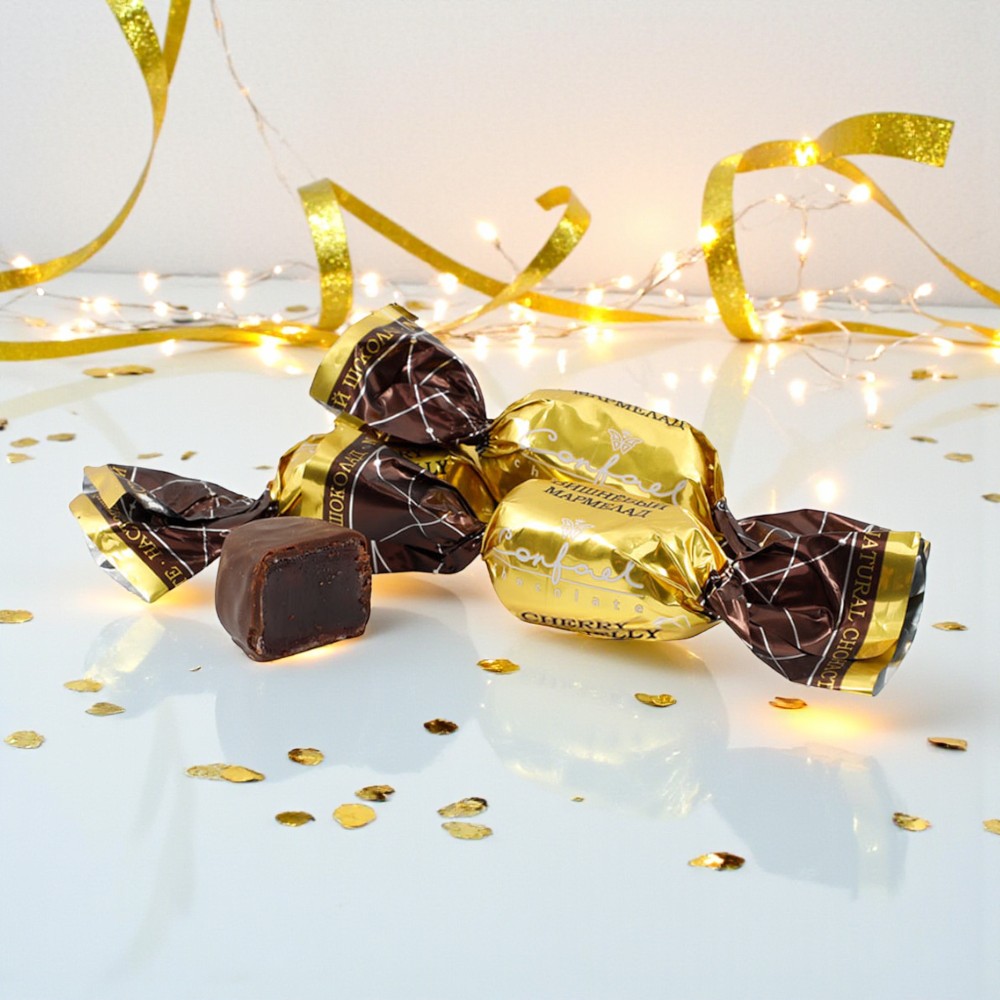 Подарок 015 / Конфеты «Желейные» в горьком шоколаде (вишневые) / 45 г