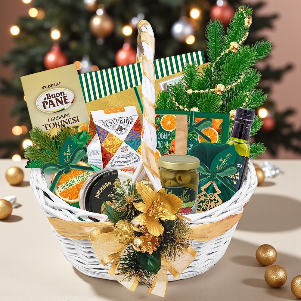 "Новогодняя корзина": шоколад, драже, конфеты, чай, паштет 1820г