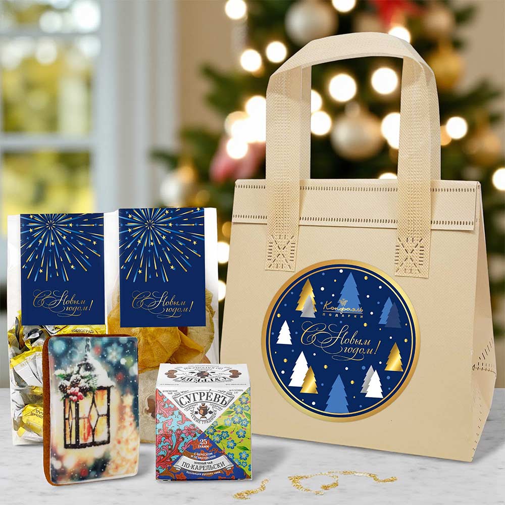 Новогодний термопакет: мармелад, фруктовые чипсы, пряник, чай 325г
