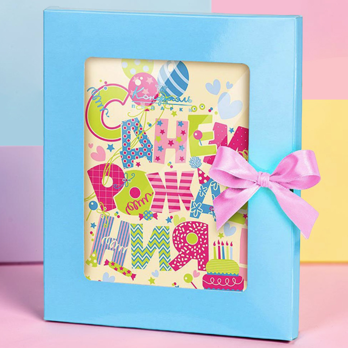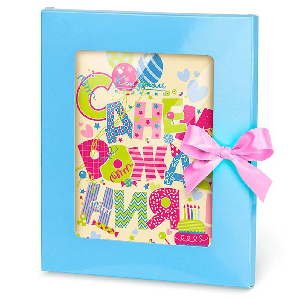«С Днём рождения» - вкусное поздравление из шоколада в виде открытки в праздничной упаковке. Теперь вы сможете сделать своим близким сладкий маленький сюрприз!