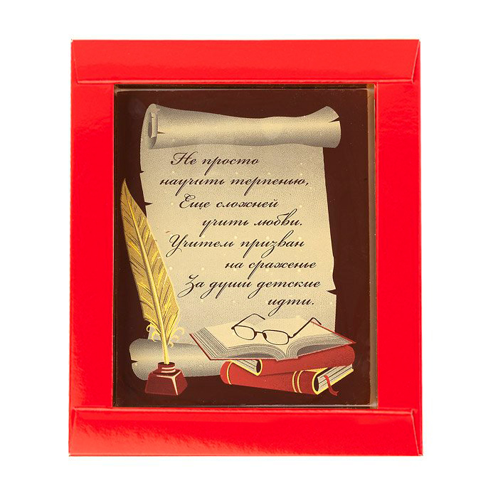 Самым трогательным презентом для педагога будут добрые слова на открытке из шоколада с достойным дизайном декора и упаковки.