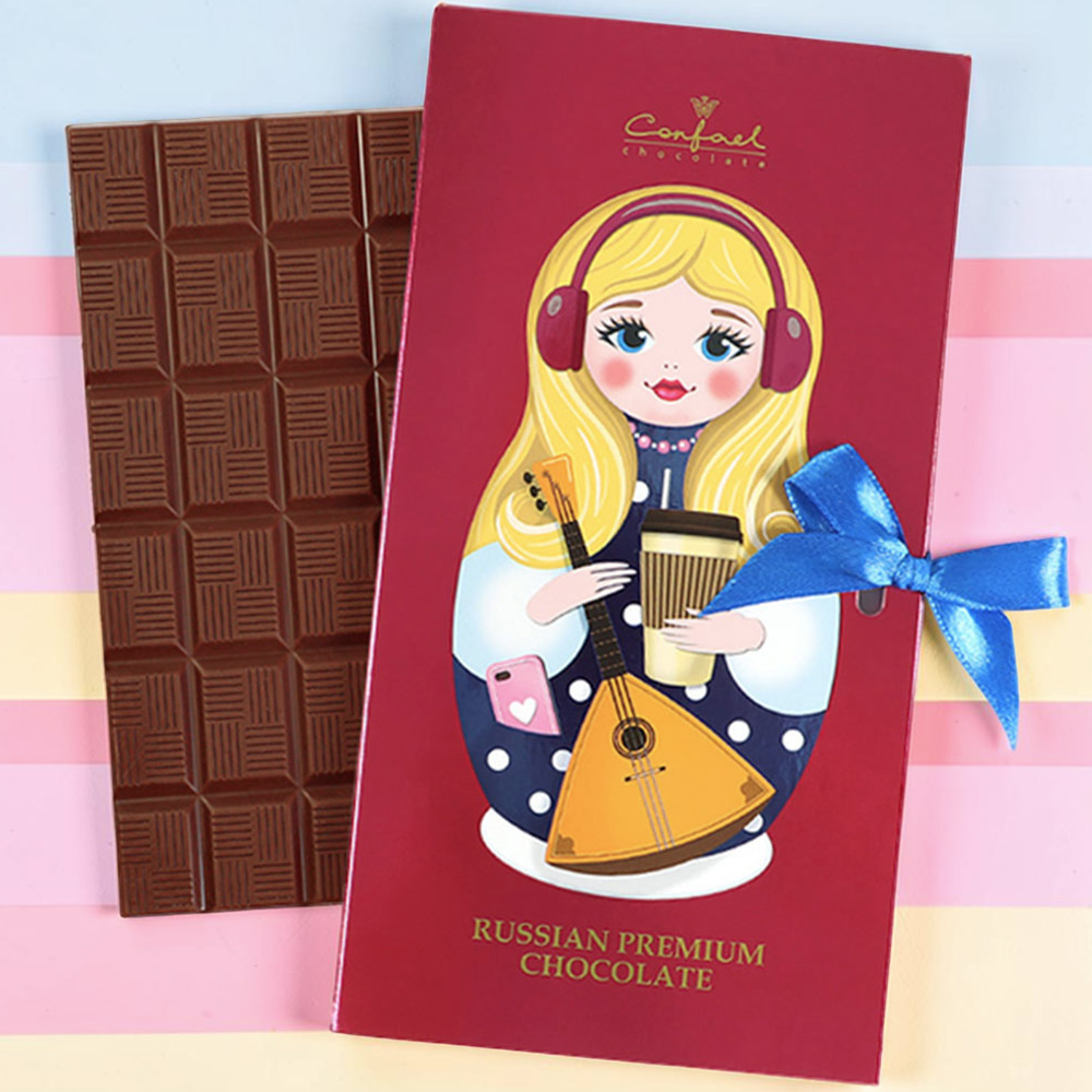Элитный шоколад в ярко-красной упаковке с красавицей- идеальный презент, который приятно удивит и коллегу по работе, и близкого человека, и ребёнка. Вас закружили предпраздничные хлопоты? И вы не успели найти шоколадный подарок для своей семьи и друзей? Специально для них кондитеры «Конфаэль» приготовили вкусное угощение!