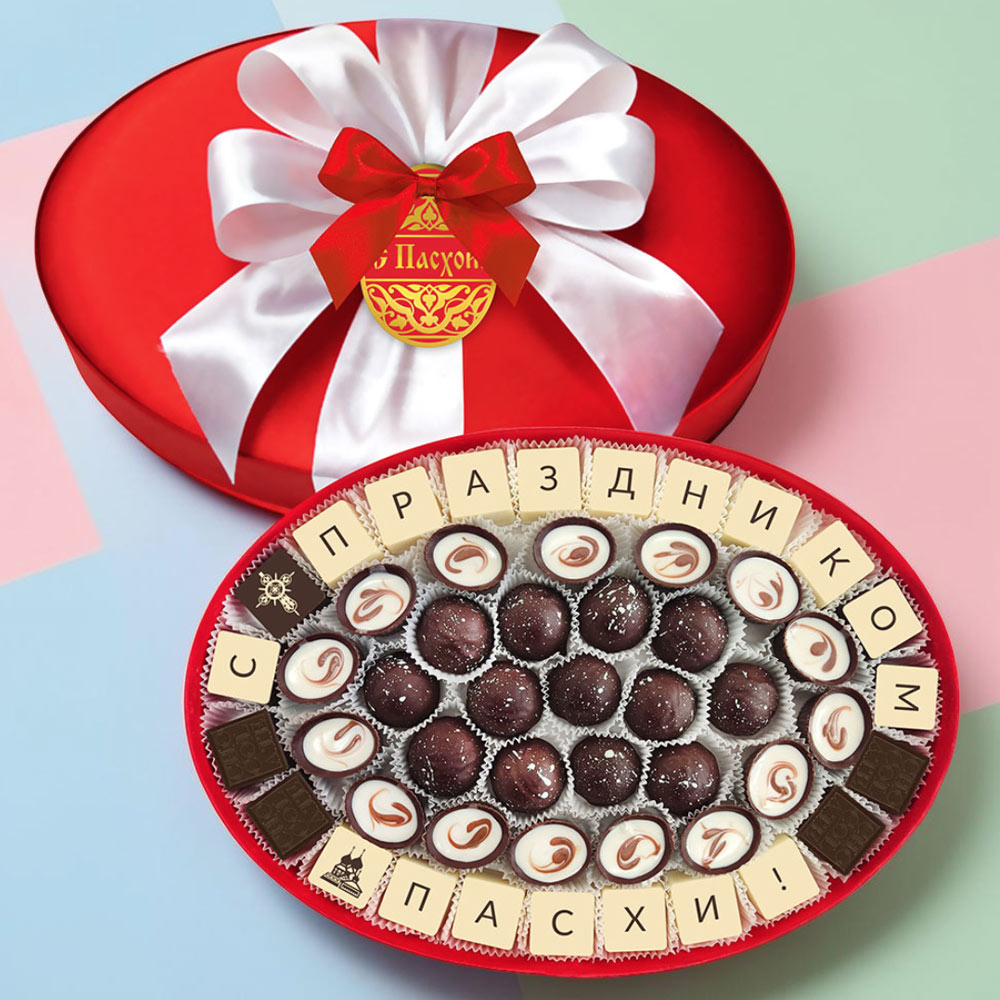 Состав: шоколадные массы – сахар, масло какао, молоко цельное сухое, сухое обезжиренное молоко, какао тертое, какао-порошок, сыворотка молочная сухая, пахта сухая, молочный жир, паста ореховая из ядер фундука, эмульгаторы (соевые лецитин, Е476), соль, натуральная ваниль, ароматизаторы; начинки – сахар, патока, какао-масло, какао тертое, молоко сгущенное (молоко цельное, сахар (сахароза, лактоза)), масла растительные рафинированные дезодорированные (подсолнечное, рапсовое, оливковое; масло сладко-сливочное, молоко сухое обезжиренное), жир специального назначения (масло ши, рапсовое масло, соевое масло, антиокислитель( лимонная кислота)), молоко сухое цельное, молоко сухое обезжиренное, белый шоколад (сахар, масло какао, сухое обезжиренное молоко, сухое цельное молоко, эмульгатор (лецитин соевый), экстракт ванили), вафельная крошка (мука пшеничная х/п первого сорта, сахар, масло кокосовое рафинированное дезодорированное, эмульгатор( лецитин соевый), пшеничные волокна (клетчатка), ароматизатор), кокосовая стружка, какао-порошок, стабилизатор (мальтодекстрин), коньяк (дистиллят коньячный, вода, сахар, пищевой краситель (сахарный колер), консервант (сорбиновая кислота), регулятор кислотности (лимонная кислота), эмульгаторы (лецитин соевый, Е471), сушеная мята, ароматизаторы, пищевой краситель (сахарный колер); декор – пищевой краситель (кандурин зеленый). Продукция производится на предприятии, где используются арахис, кунжут, орехи, яичные и молочные продукты, злаки, содержащие глютен.