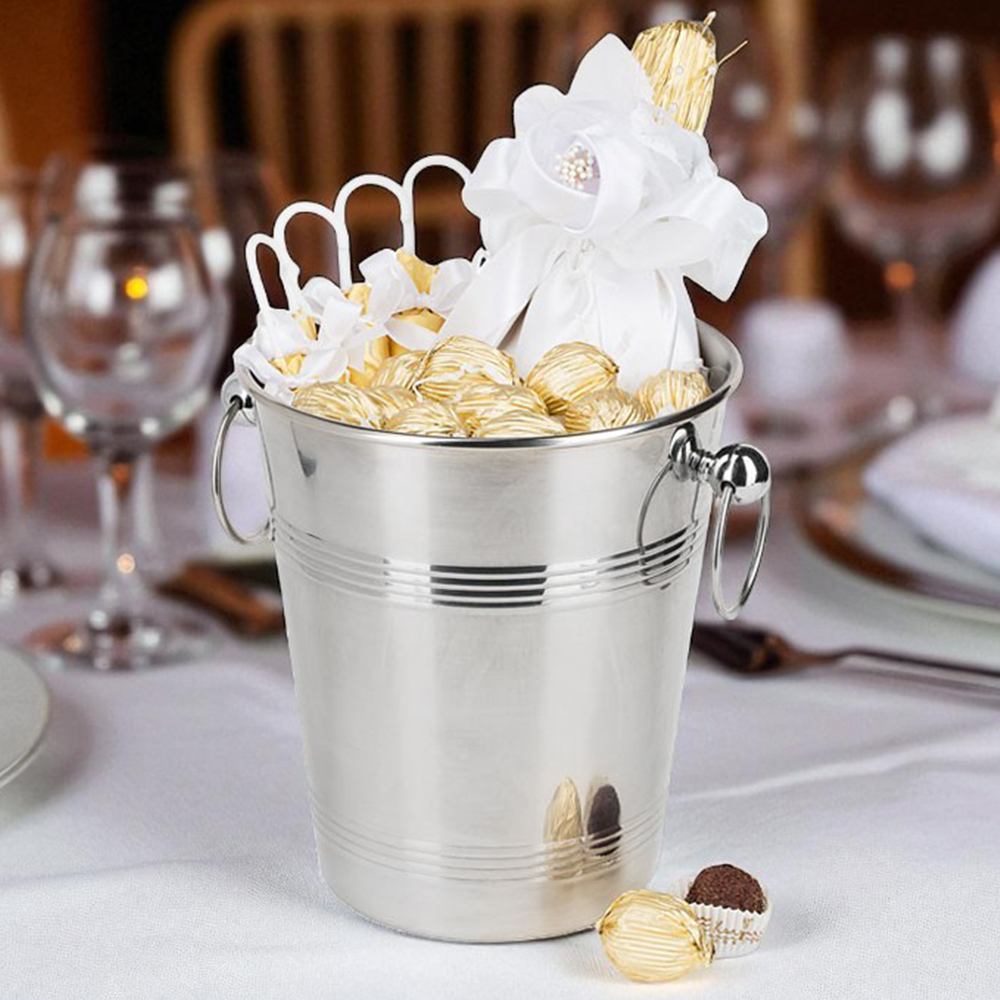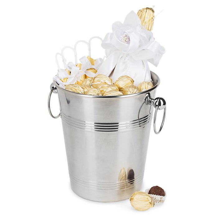 Ищете необычный подарок на свадьбу? Ведро для шампанского с золотым наполнением - шоколадной скульптурой "Шампанское" и вкусными конфетами из шоколада - уникальный презент-сюрприз, который запомнится на всю жизнь!