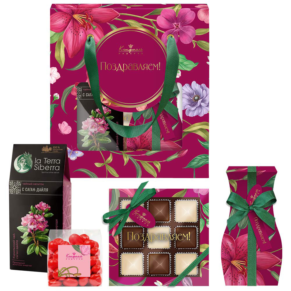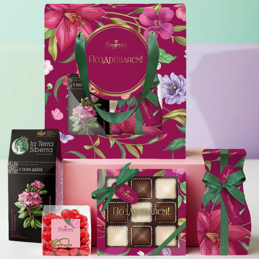 Поздравление 09/ Шоколадные конфеты «Ассорти» с шоколадной и кремовой начинками/ 95г