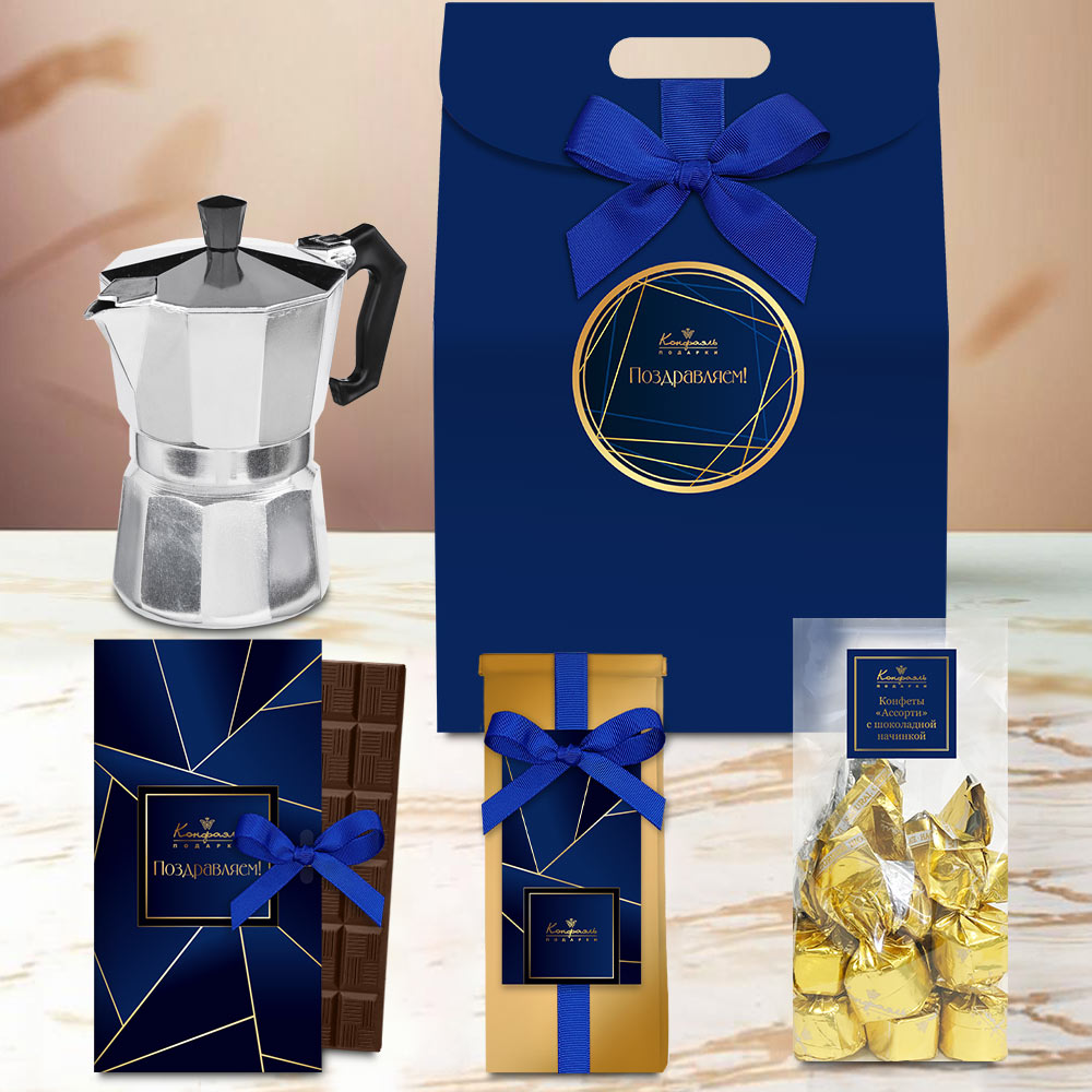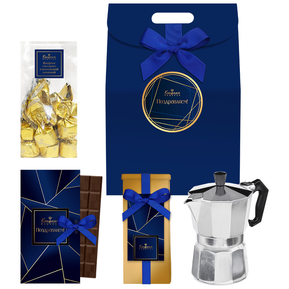 Подарочный набор: шоколад, кофе, кофеварка, ассорти 310г