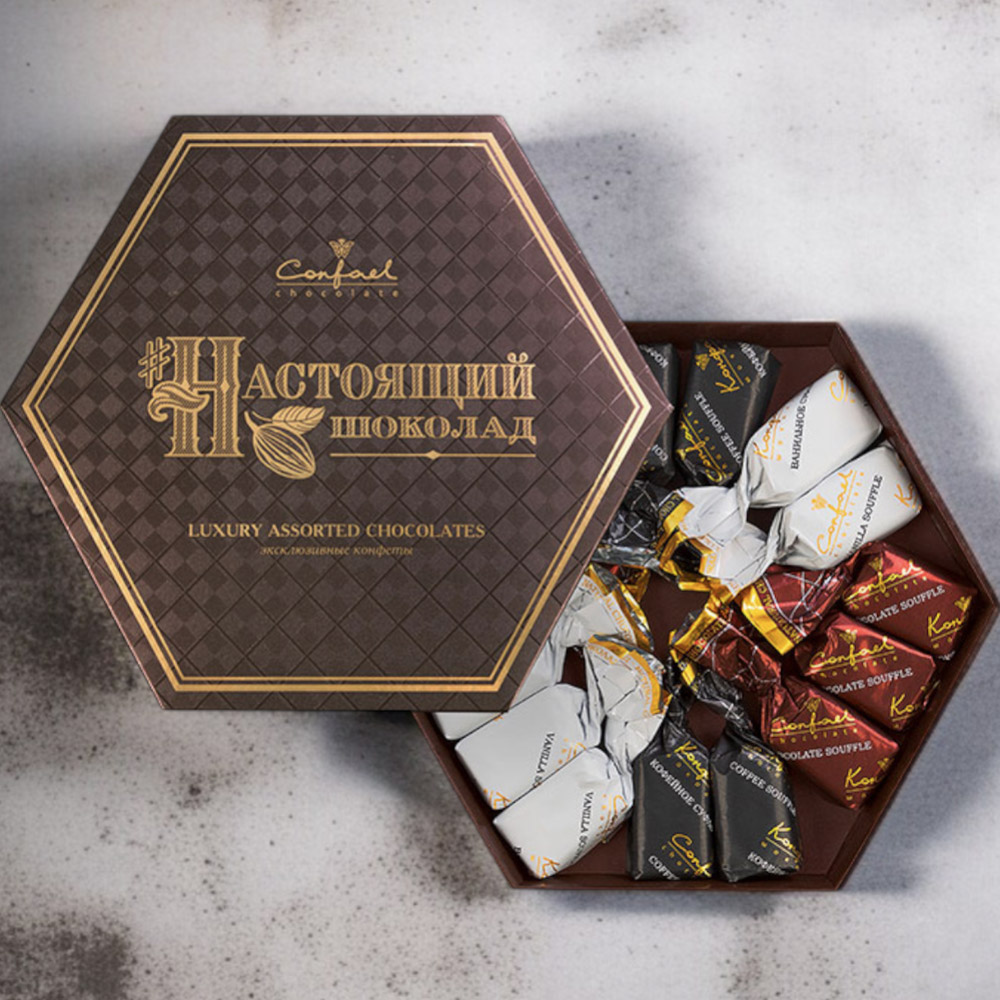 Настоящий шоколад не содержит заменителей какао-масла, пальмового, масла ши и других вредных жиров, а также какао-порошка, что отличает "Конфаэль" от большинства современных производителей.