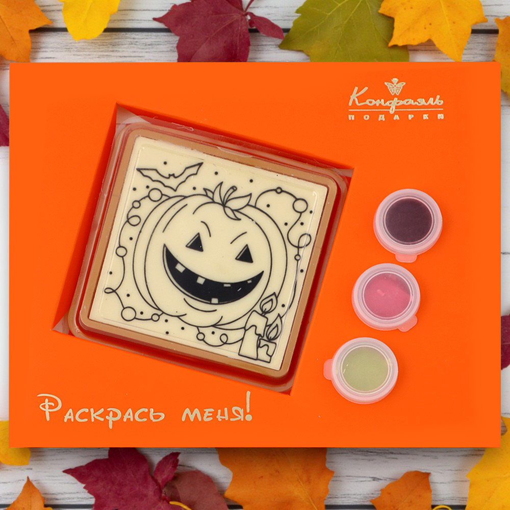Набор шоколада: декорированное полотно из белого шоколада, цветная глазурь.