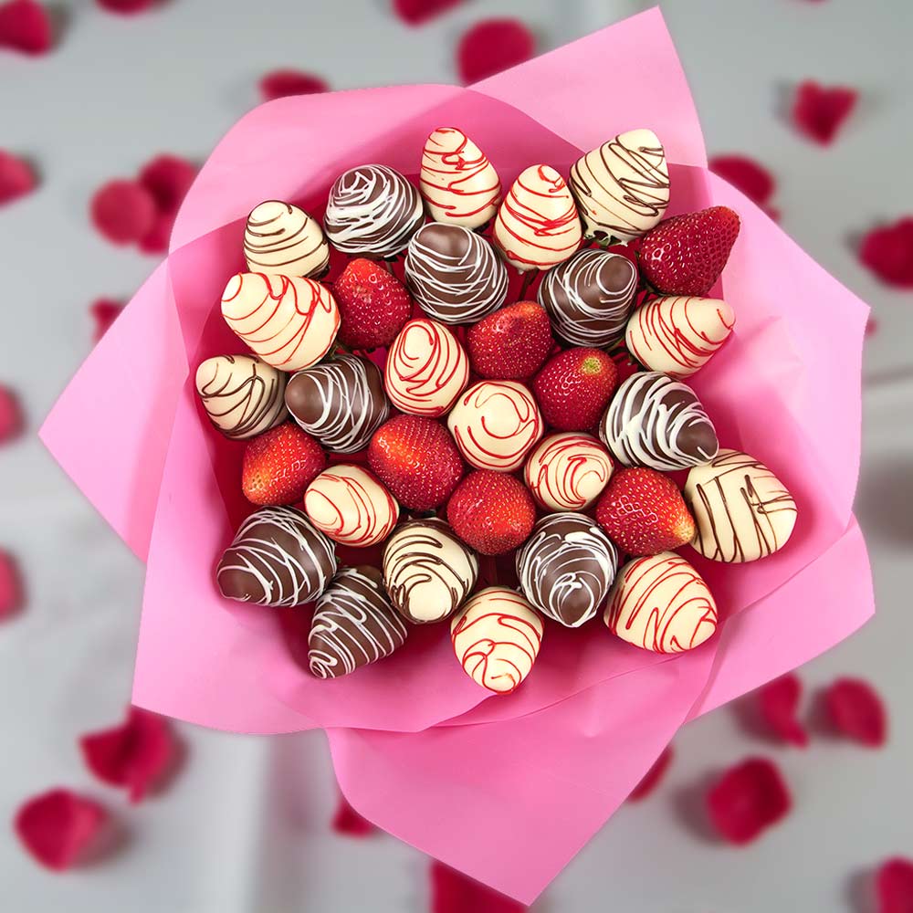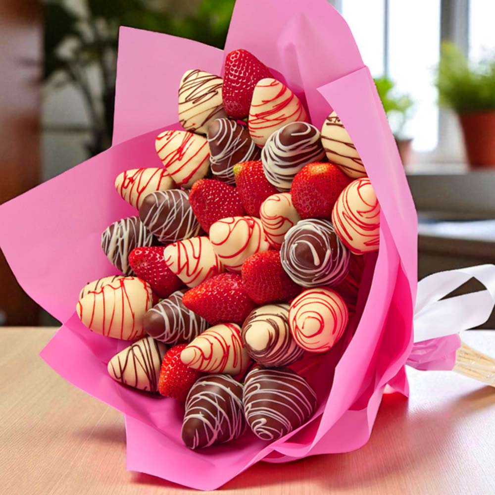 Свежая клубника в белом и горьком шоколаде