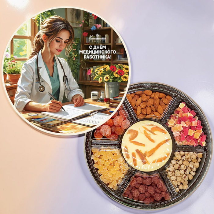 Подарите медикам сладкое признание и тепло с нашим изысканным набором — белым шоколадом с цукатами апельсиновых корочек, а также цукатами ананаса, папайи, черешней, кумквата и хрустящими ядрами миндаля и фундука. Этот роскошный набор — идеальный способ выразить благодарность за их труд, заботу и самоотверженность.