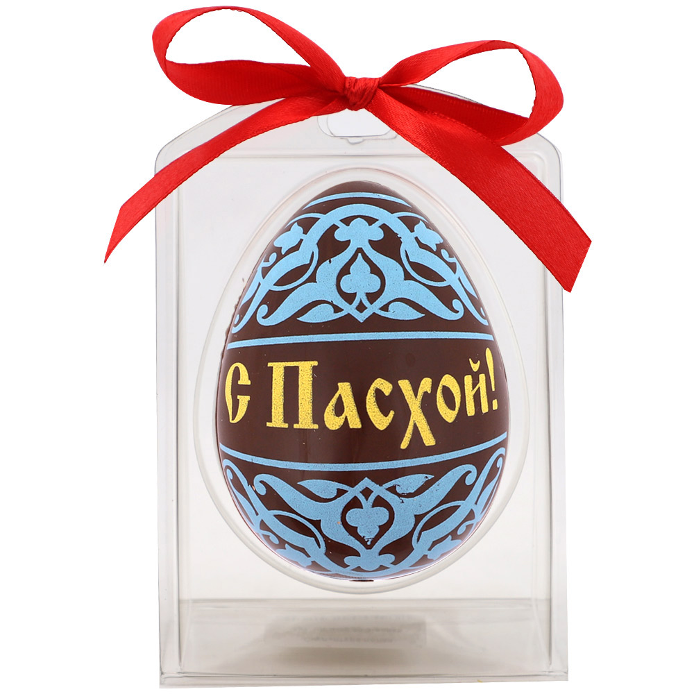 "С Пасхой" яйцо молочный шоколад (синий рисунок)