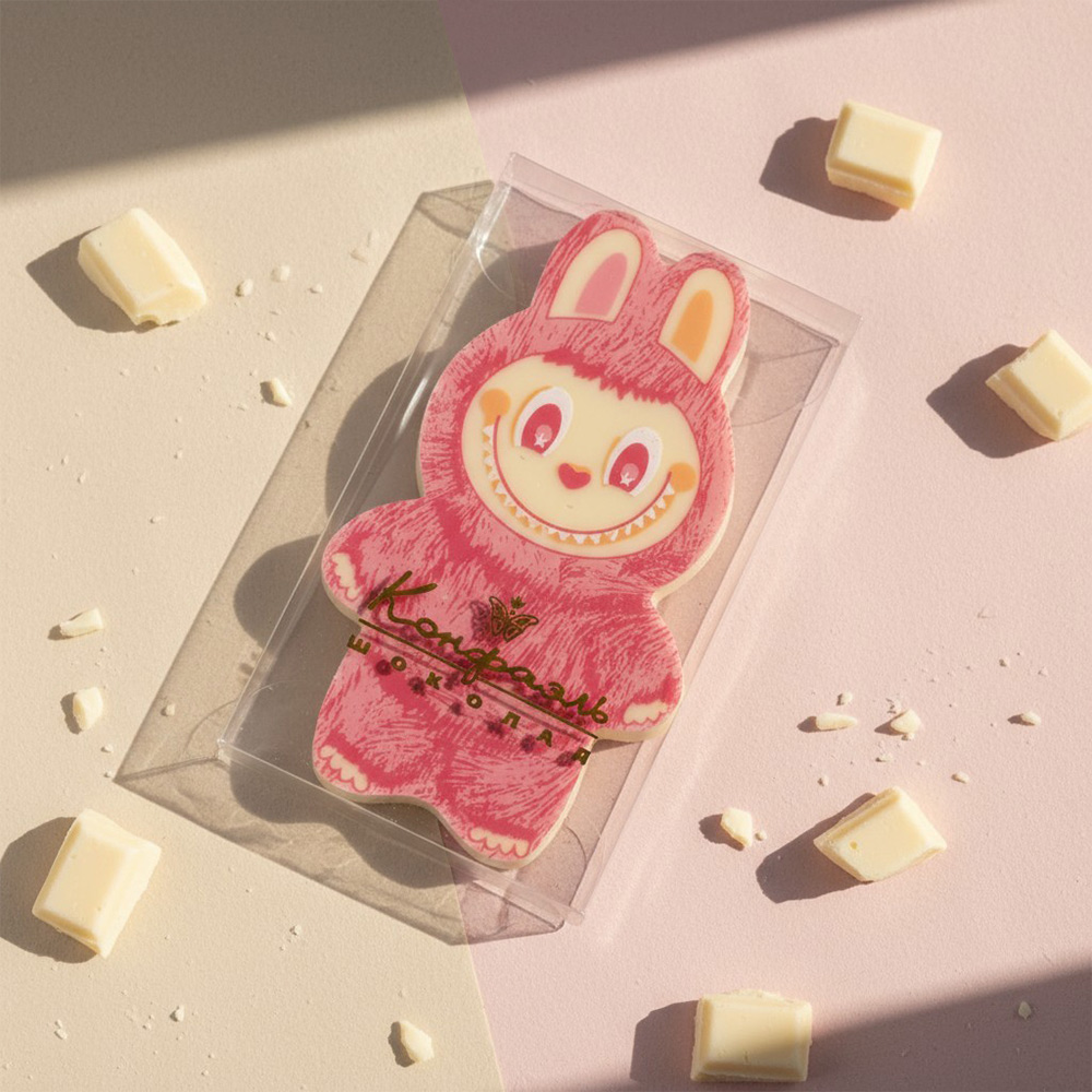 Ищете милый и стильный сладкий сюрприз? Представляем Вам «Лабубушка» — белый шоколад с розовым декором — идеальный мини‑формат для любого повода!