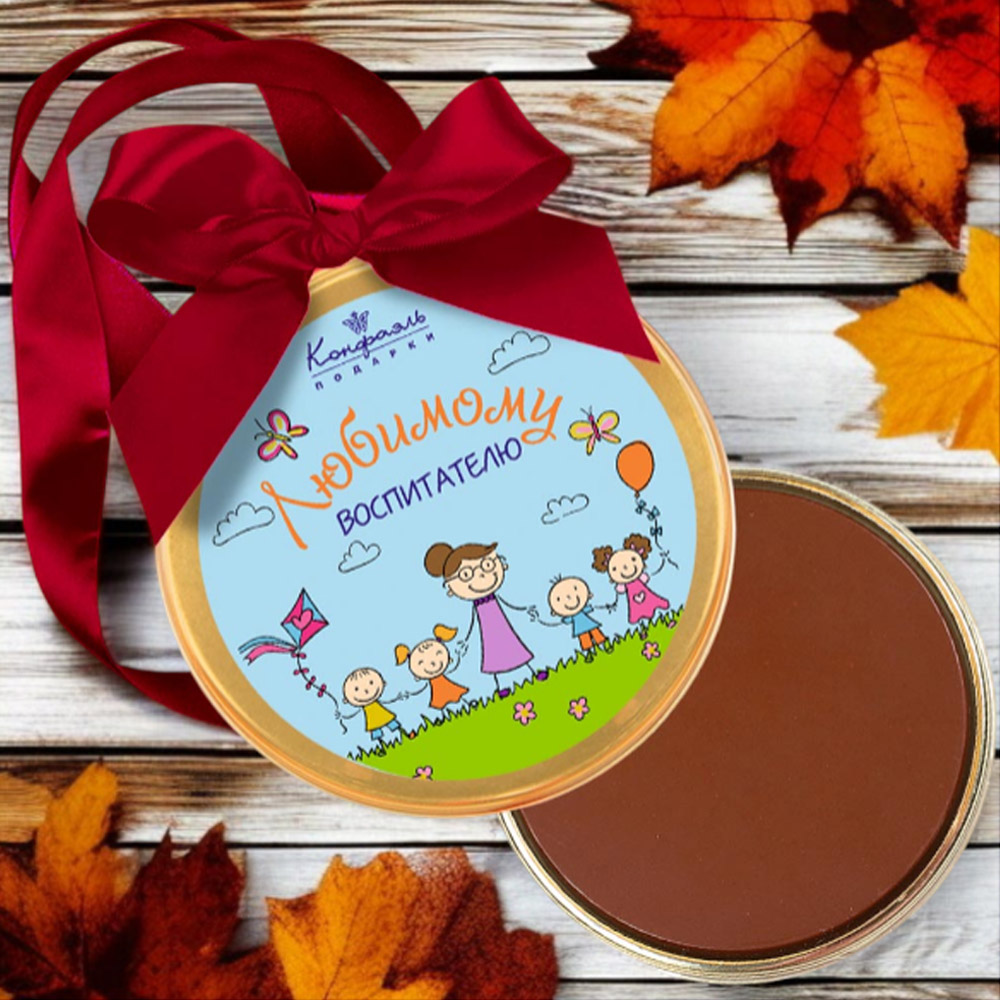 Кондитеры компании «Конфаэль» специально для такого случая изготовили из натурального шоколада эксклюзивную медаль «Любимому воспитателю».