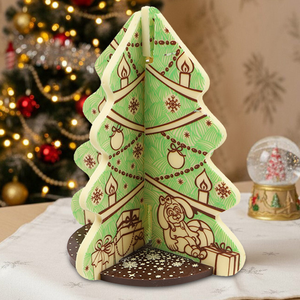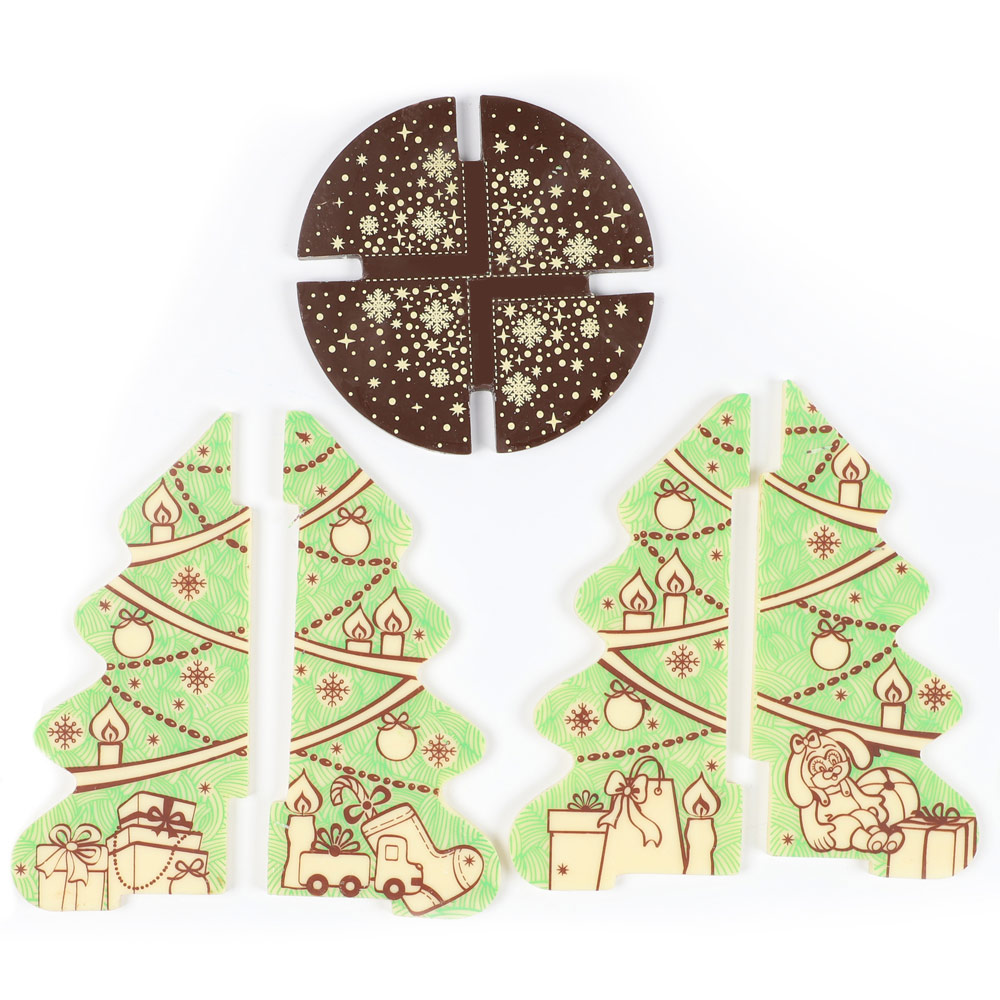 Елка -пластины из молочного и белого шоколада c декором.