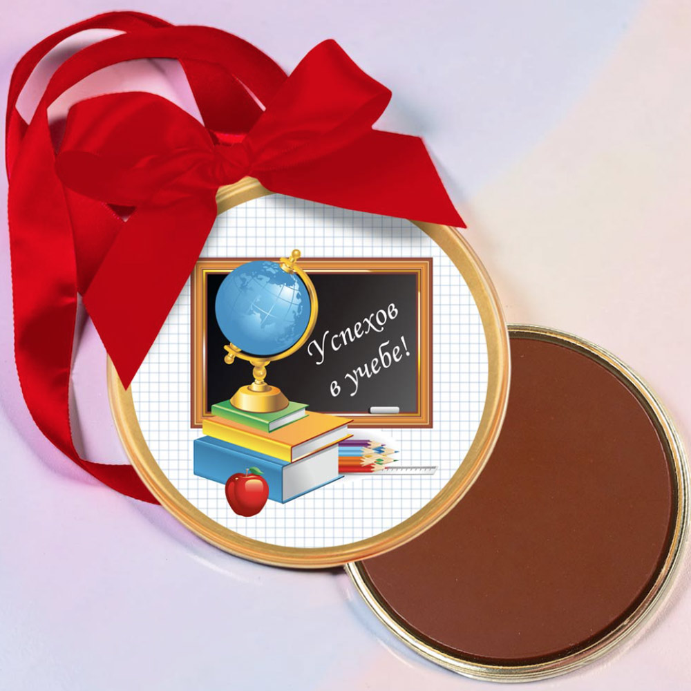 Медаль «Успехов в учёбе» из молочного шоколада в красивой упаковке, большая и очень вкусная, будет заслуженной наградой вашему ребёнку, упорно грызущему гранит науки!