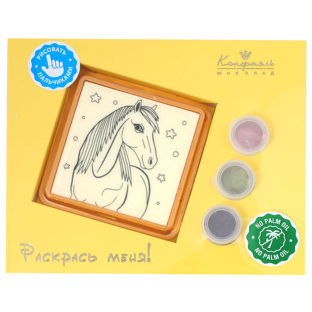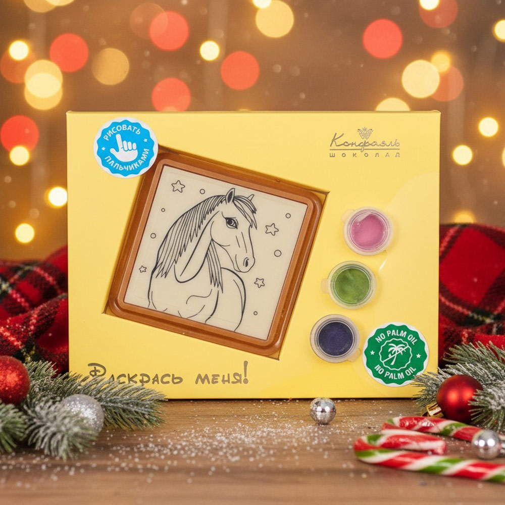 Шоколадная раскраска «Символ года 2026» — огненная Лошадь в белом шоколаде!