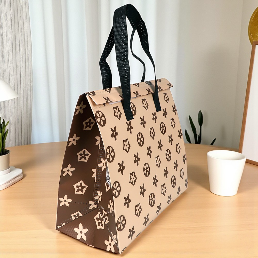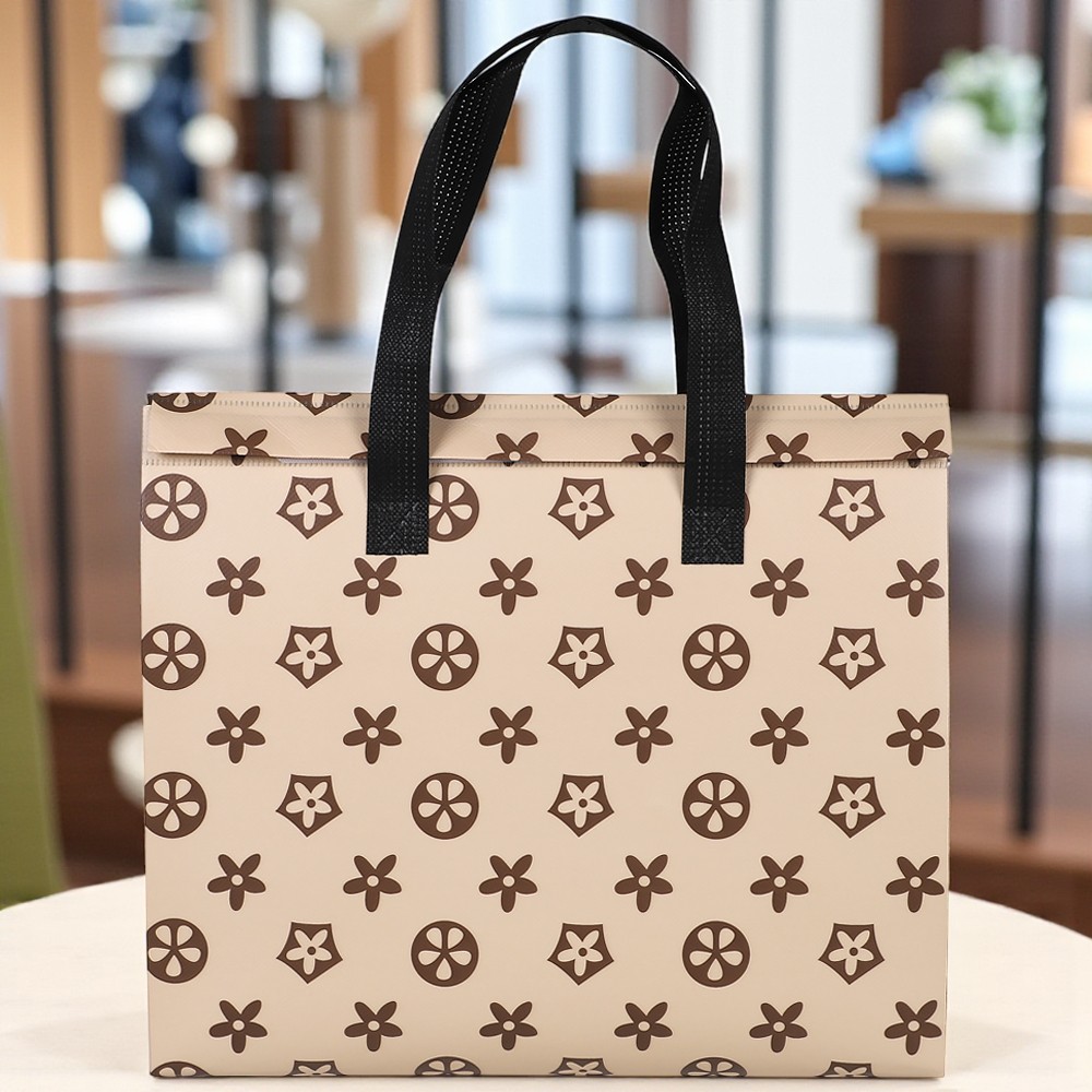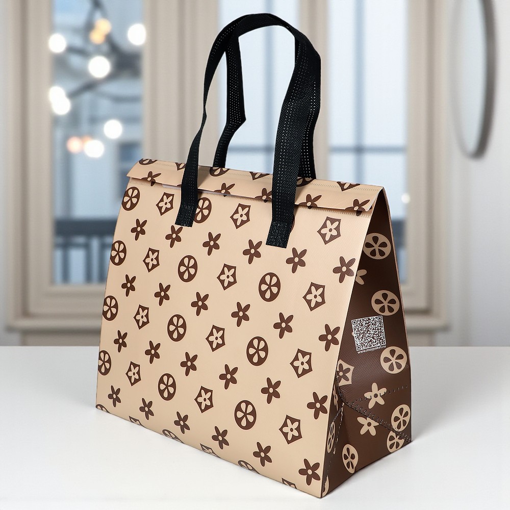 Сумка из ламинированного нетканого материала с фольгированным слоем(3-х слойная) застежка-липучка многоразовая, ручки 50 см