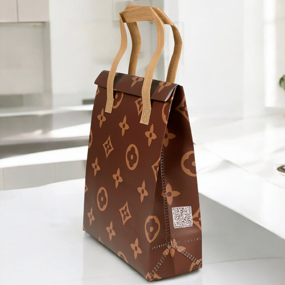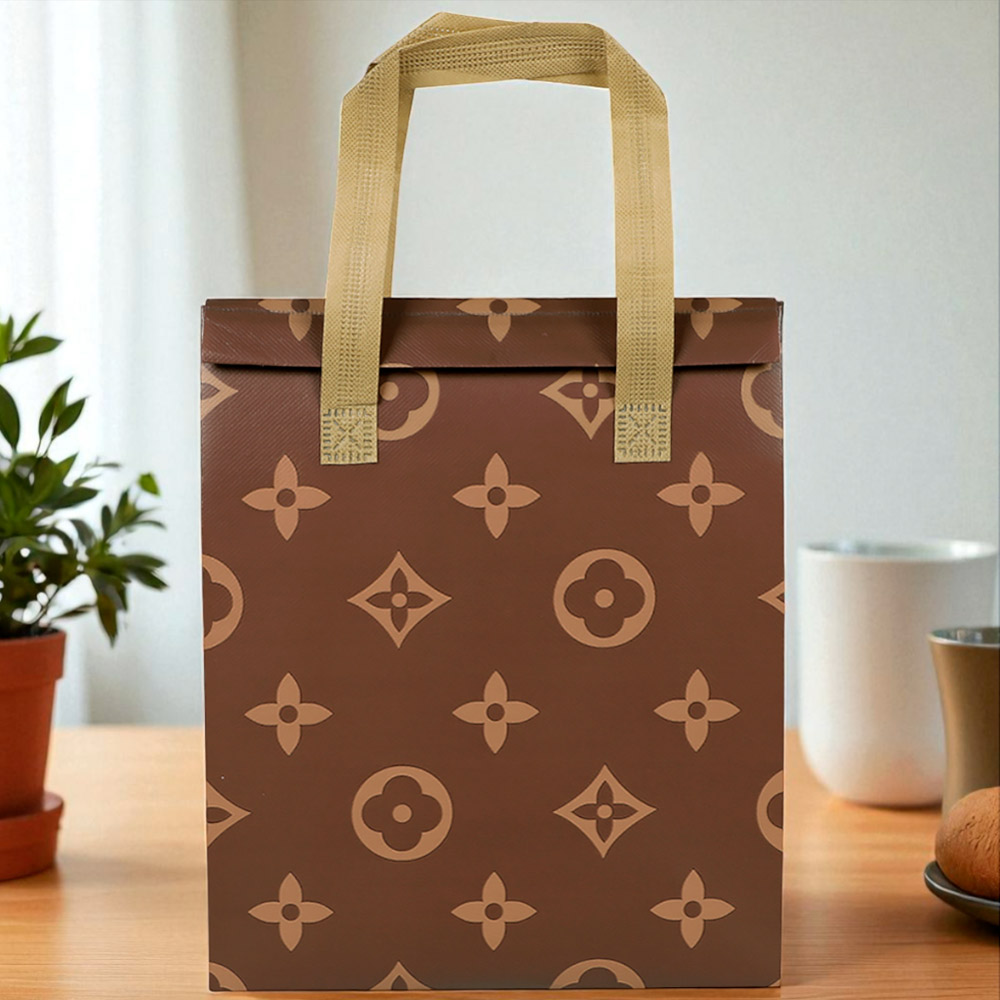 Термопакет коричневый с рисунком 25*30*10 (застежка-липучка многоразовая)