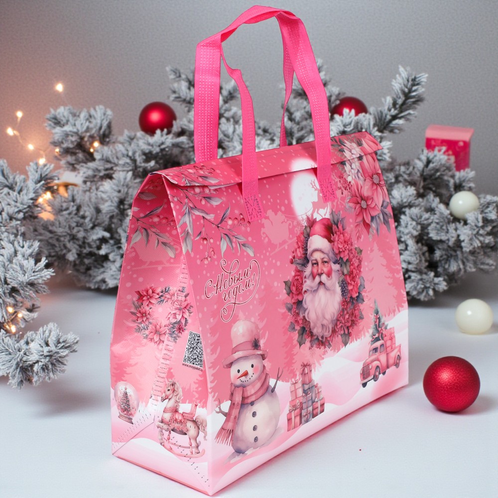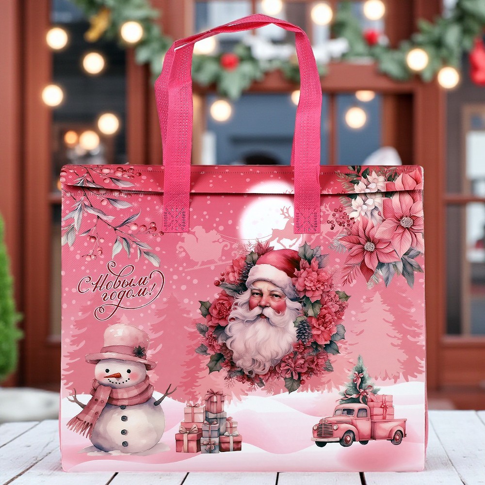 Термопакет розовый "С Новым годом" 35х30х13 см (застежка липучка многоразовая)
