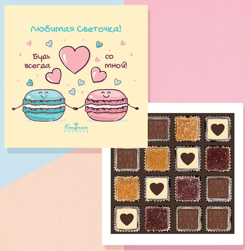 Шоколадные подарки Конфаэль производятся людьми, которые любят свое дело. Будьте уверены, мы отнесемся к вашему подарку, как