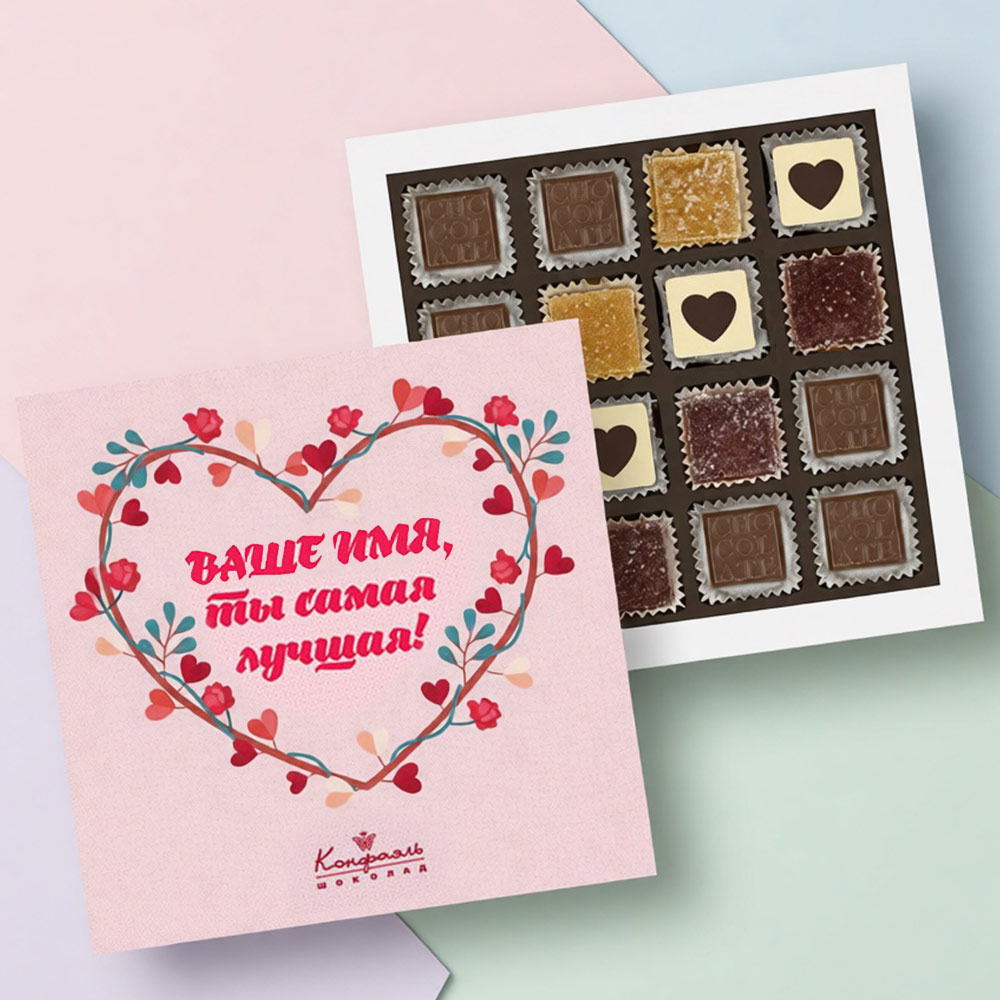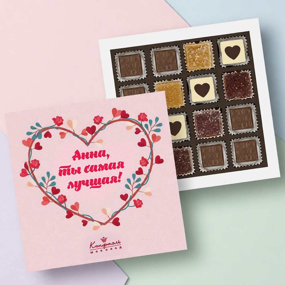 2. Выберите имя, которое вы хотите разместить на коробке, и отправьте эту информацию на электронный адрес : podarok@confaelshop.ru.
