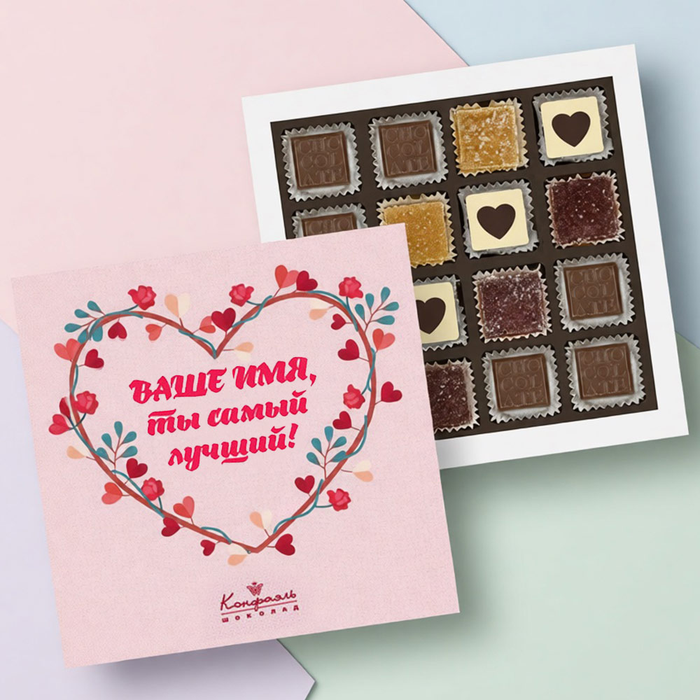 Ваш текст на наборе конфет «Ты самый лучший» (солобокс розовый)